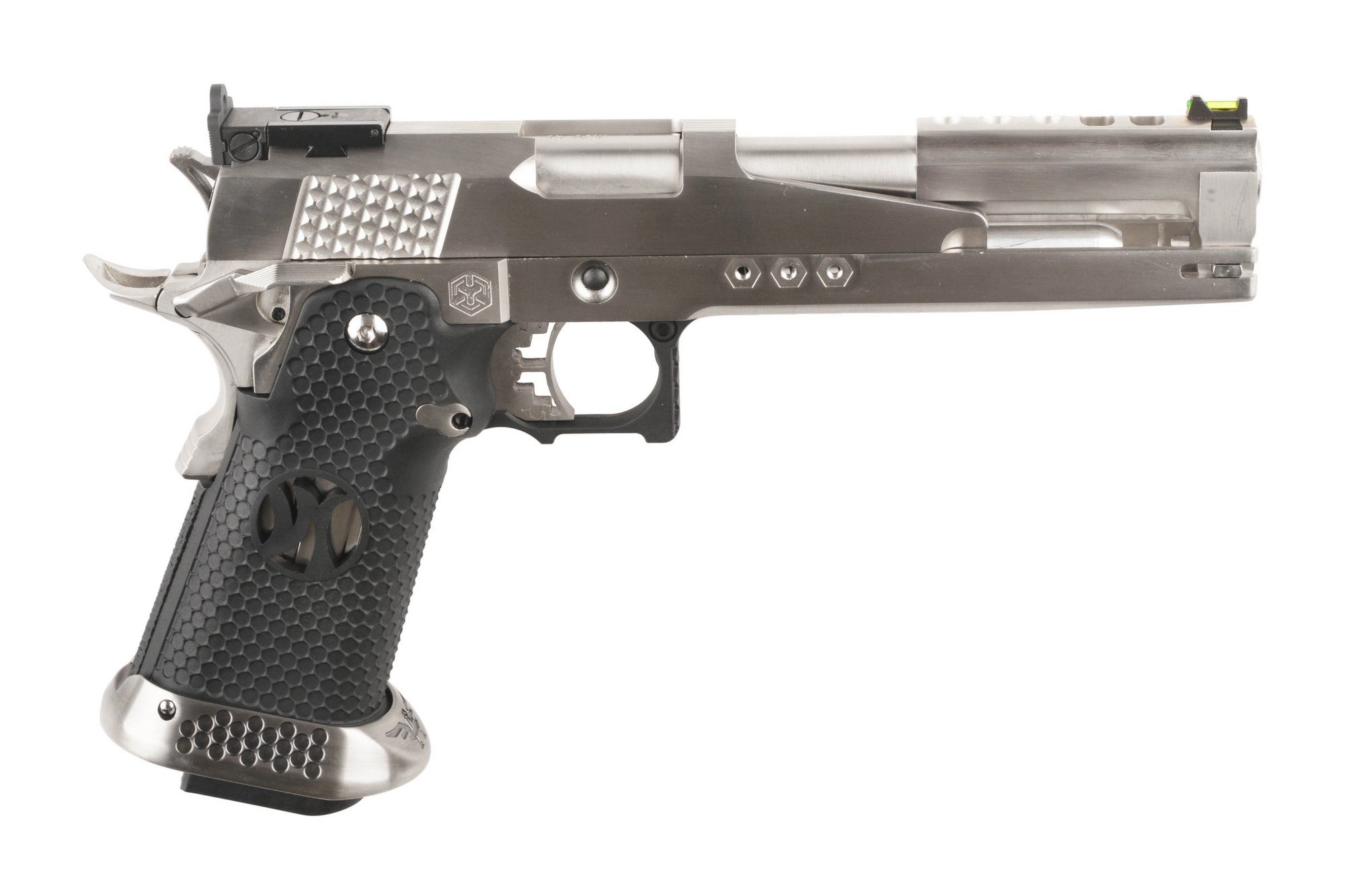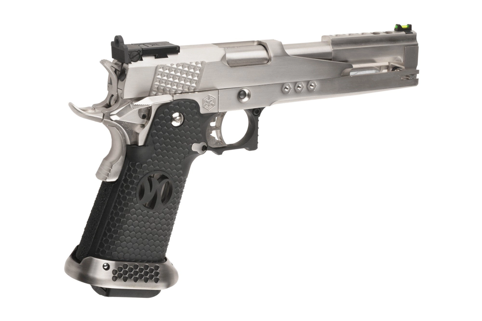Customowa replika pistoletu gazowego którego bazę stanowi sprawdzona od 1911-tego roku konstrukcja. Cały szkielet pistoletu wraz z zamkiem wykonano z wysokiej jakości metalu, zaś okładziny chwytu pistoletowego o profilowanej fakturze – z wytrzymałego tworzywa sztucznego. Doskonałe wykonanie oraz spasowanie części gwarantują bezproblemową i precyzyjną pracę repliki.