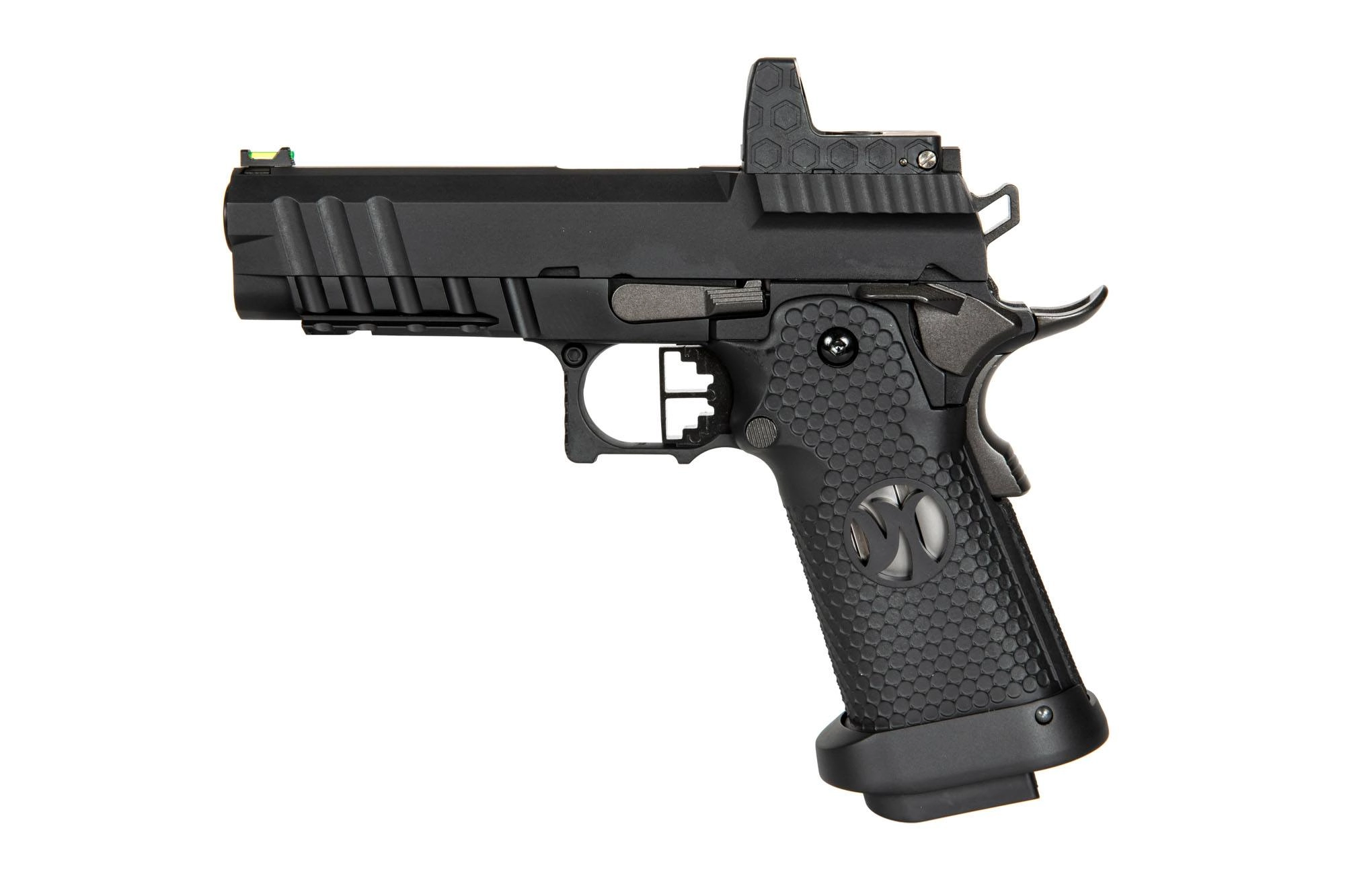 Customowa replika pistoletu gazowego którego bazę stanowi sprawdzona od 1911-tego roku konstrukcja. Cały szkielet pistoletu wraz z zamkiem wykonano z wysokiej jakości metalu, zaś okładziny chwytu pistoletowego o profilowanej fakturze – z wytrzymałego tworzywa sztucznego. Doskonałe wykonanie oraz spasowanie części gwarantują bezproblemową i precyzyjną pracę repliki.