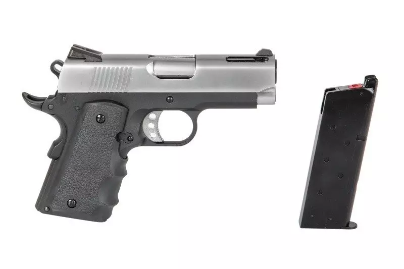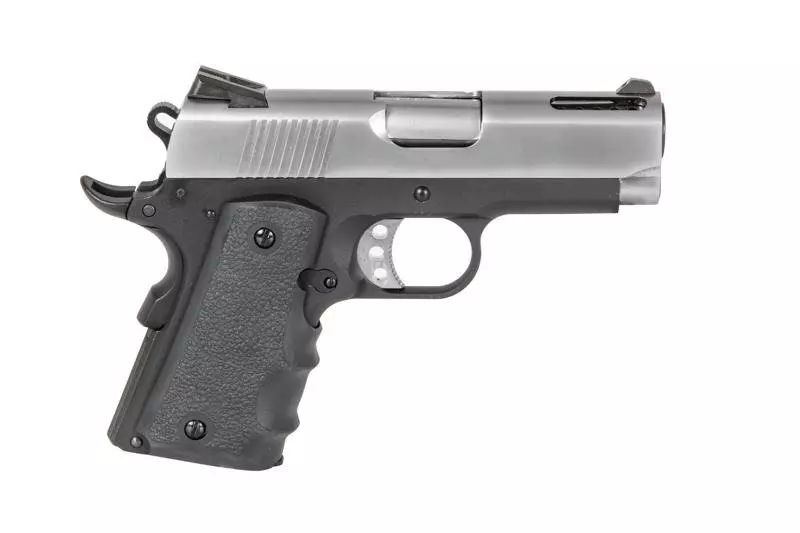 Customowa i kompaktowa replika pistoletu gazowego którego bazę stanowi sprawdzona od 1911-tego roku konstrukcja. Główna konstrukcja pistoletu wykonana została z metalu, zaś okładziny chwytu pistoletowego o profilowanej fakturze – z wytrzymałego tworzywa sztucznego. Doskonałe wykonanie oraz spasowanie części gwarantują bezproblemową i precyzyjną pracę repliki.