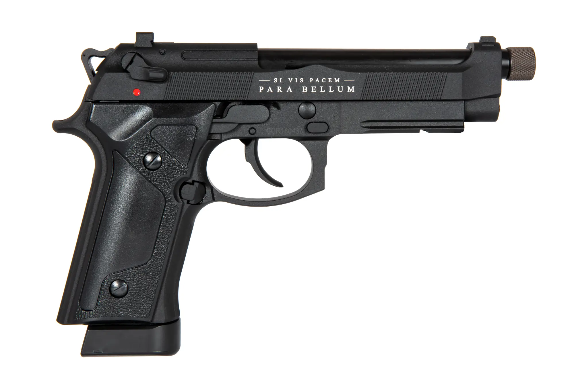 Wykonana z wysoką starannością replika pistoletu BELLUM X w wersji CO2 wykonano prawie w całości z wysokiej jakości metalu.