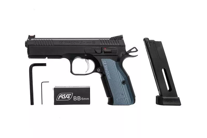 Gazowa replika pistoletu CZ Shadow 2 w większości wykonana została z metalu. Zamek pistoletu wykonany został z anodyzowanego aluminium. Pozostałe elementy jak korpus, nakładki chwytu oraz magazynek wykonano z metalu. Na pistolet naniesione zostały licencjonowane oznaczenia Česká Zbrojovka.
