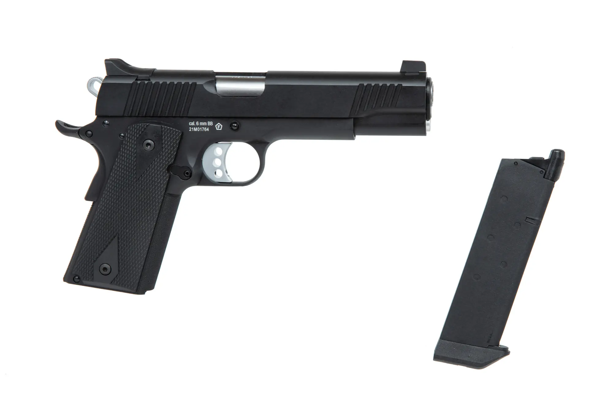 Replika zaopatrzona jest w dwustronny bezpiecznik skrzydełkowy, blokujący mechanizm zamka i uniemożliwiający oddanie przypadkowego strzału. Dostęp do bezpiecznika jest bardzo prosty zarówno dla osób lewo, jak i praworęcznych – dźwignia mechanizmu znajduje się w zasięgu kciuka. W modelu tym zastosowano również funkcjonalny tylny bezpiecznik dociskowy. Wymusza on prawidłowy chwyt w celu oddania strzału, podobnie jak w palnym oryginale.