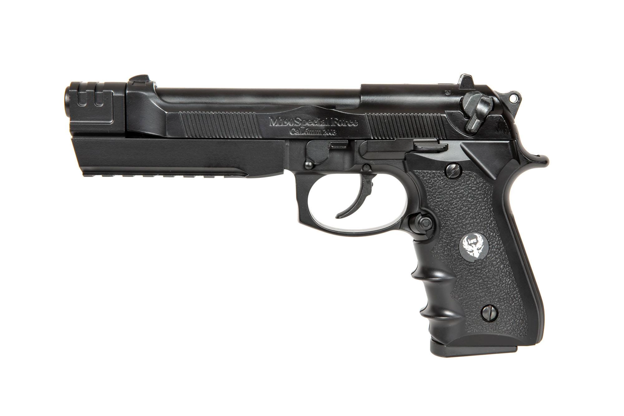 Airsoftowa replika pistoletu zasilana green gazem, wyprodukowana przez tajwańską markę HFC. Pistolet w większości wykonany został z metalu, metalowy jest tu zamek, szkielet, magazynek oraz detale takie jak kurek i bezpiecznik. Z polimerowego tworzywa wykonano stopkę magazynka a także atrapę kompensatora wraz z szyną RIS, która umożliwia montaż dodatkowych akcesoriów taktycznych jak latarki, czy celowniki laserowe.
