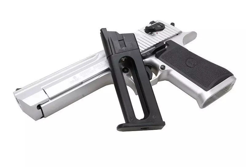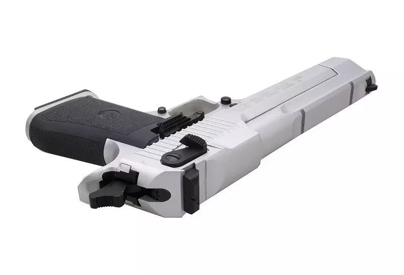 Wykonana z wysokiej jakości, elastycznego tworzywa sztucznego (chwyt pistoletowy, osłona spustu i dolna część szkieletu) oraz jednolitego stopu cynku i aluminium (dwuczęściowy zamek, magazynek) replika legendarnego izraelskiego pistoletu produkcji firmy KWC. Z metalu wykonano suwadło oraz większość drobnych elementów, z tworzywa sztucznego zaś – szkielet pistoletu.