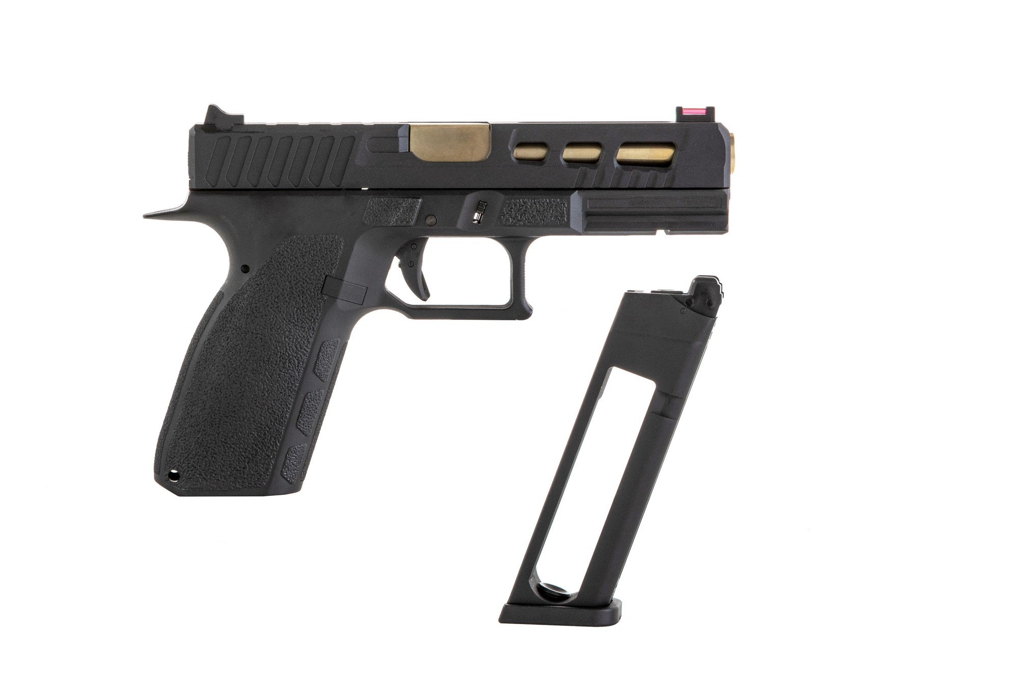 Replika zasilana jest kapsułą 12g CO2, montowaną bezpośrednio do magazynka. Sam magazynek natomiast jest dwurzędowy, co pozwoliło zmieścić w nim 24 pociski. Dodatkową zaletą jest tu zwalniacz kurka, co zapobiega ewentualnemu przypadkowemu wystrzałowi.