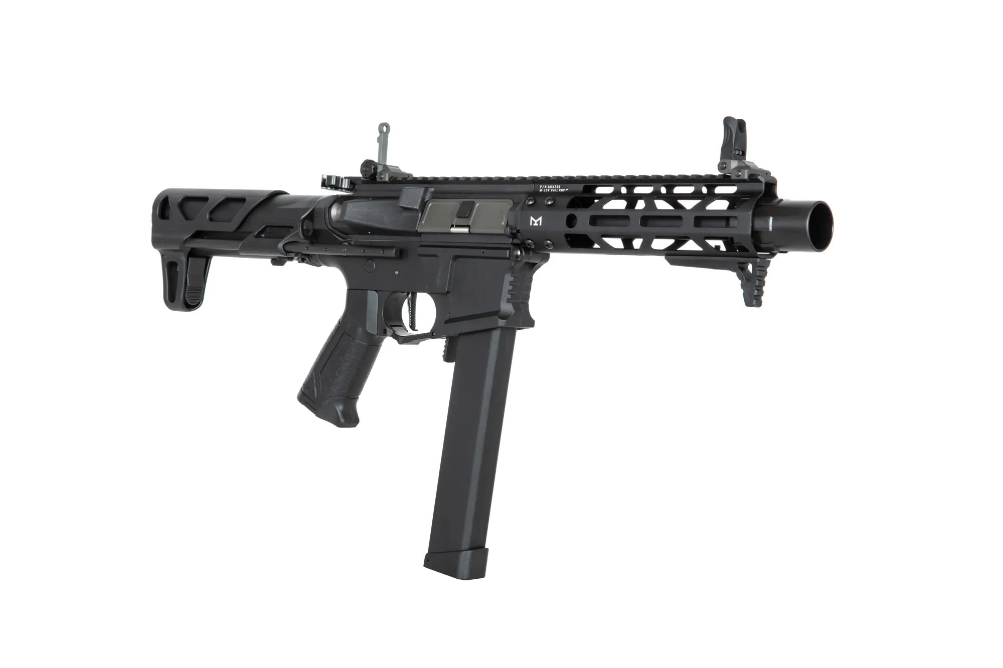 Replikę wyposażono w kolbę PDW wykonaną z tworzywa sztucznego na stalowych prowadnicach, ergonomiczny chwyt pistoletowy, przyrządy celownicze typu flip-up, powiększoną dźwignię przeładowania, tłumik płomieni typu amplifier oraz aluminiowy front w systemie M-LOK z handstopem.