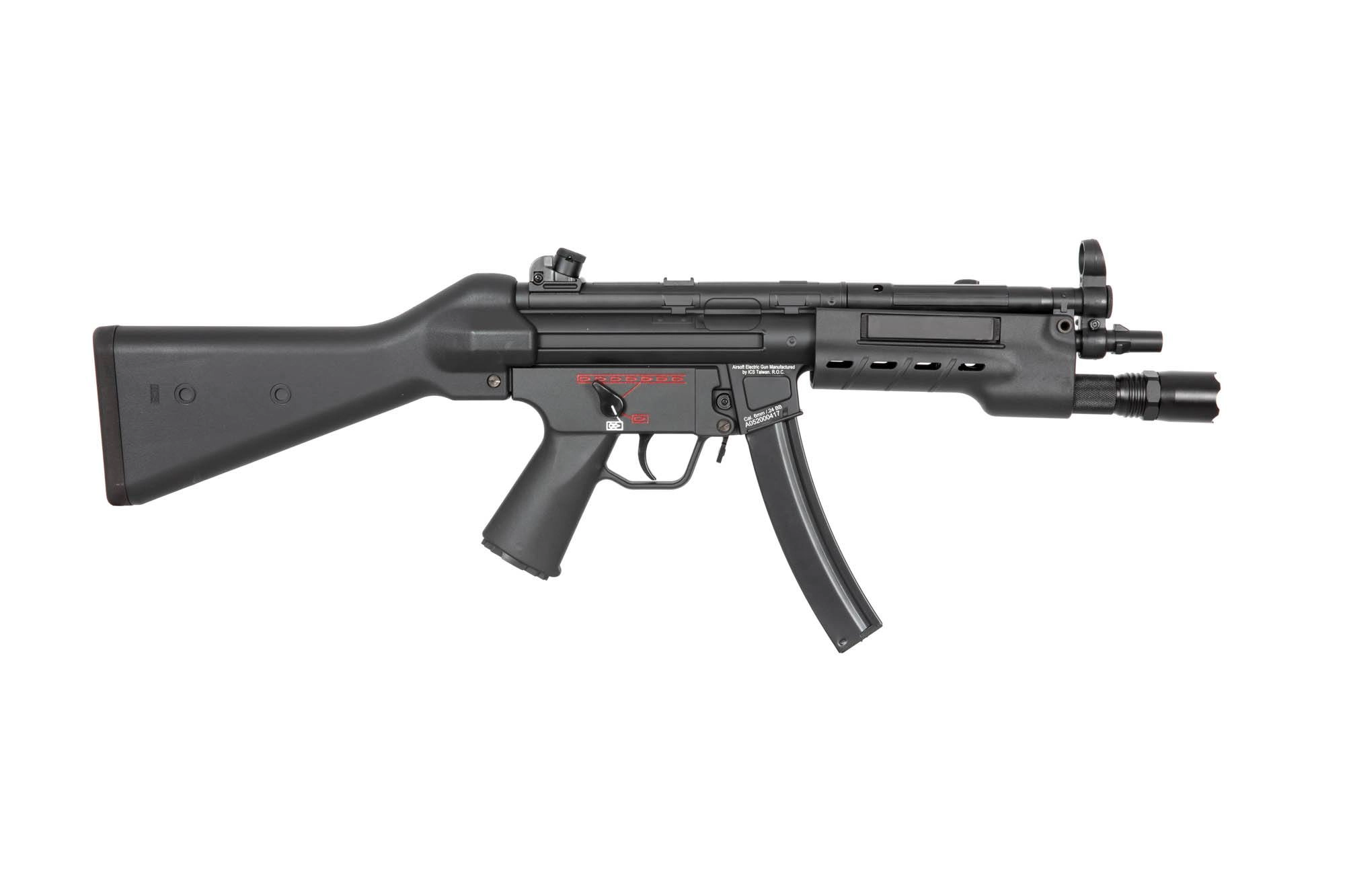 CES A4 to replika airsoftową AEG wyprodukowana przez kultową markę ICS. Replikę wykonano z najwyższą dbałością o szczegóły z metalu oraz polimerowego tworzywa sztucznego TPR o przyjemnej w dotyku fakturze. Metalowy jest tu górny korpus, urządzenie wylotowe, przyrządy celownicze, latarka oraz rączka przeładowania. Dolny korpus wraz z chwytem pistoletowym, kolbę i łoże wykonano z polimeru, natomiast magazynek i zaczepy pasa nośnego – ze stali.