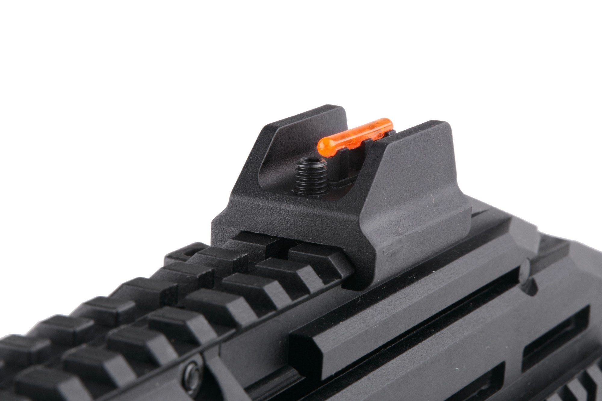 Replika została wyposażona w długą grzbietową oraz 3 krótkie uniwersalne szyny montażowe RIS 22mm na chwycie przednim. Dzięki nim mamy możliwość montażu całej gamy dodatkowych akcesoriów. Bezpiecznik / selektor ognia, jest obustronny, natomiast rączkę przeładowania można w kilka chwil przełożyć na lewą stronę, przez co replika jest wygodna i bezproblemowa w obsłudze również dla osób leworęcznych. Zakończona antypoślizgową stopką kolba jest składana na bok korpusu, posiada również możliwość 3-stopniowej regulacji długości. Aby uzyskać dostęp do komory Hop-up należy odciągnąć dźwignię przeładowania i zablokować ją w pozycji tylnej. Wartym uwagi detalem jest tu działający bolt-catch