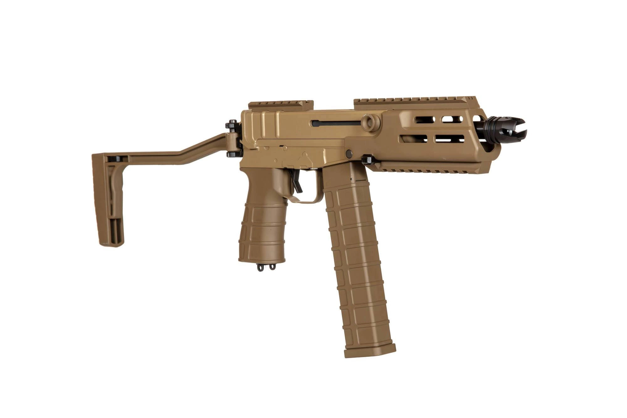 Replika wykonano w większości z wytrzymałego tworzywa sztucznego, metalowe są małe elementy jak manipulatory czy osłona języka spustowego. Replika posiada chwyt przedni z systemem szyn montażowych M-LOK oraz szyny RIS / Picatinny pod lufą oraz na grzbiecie repliki. Składana na bok kolba posiada wygodną, gumową stopkę.