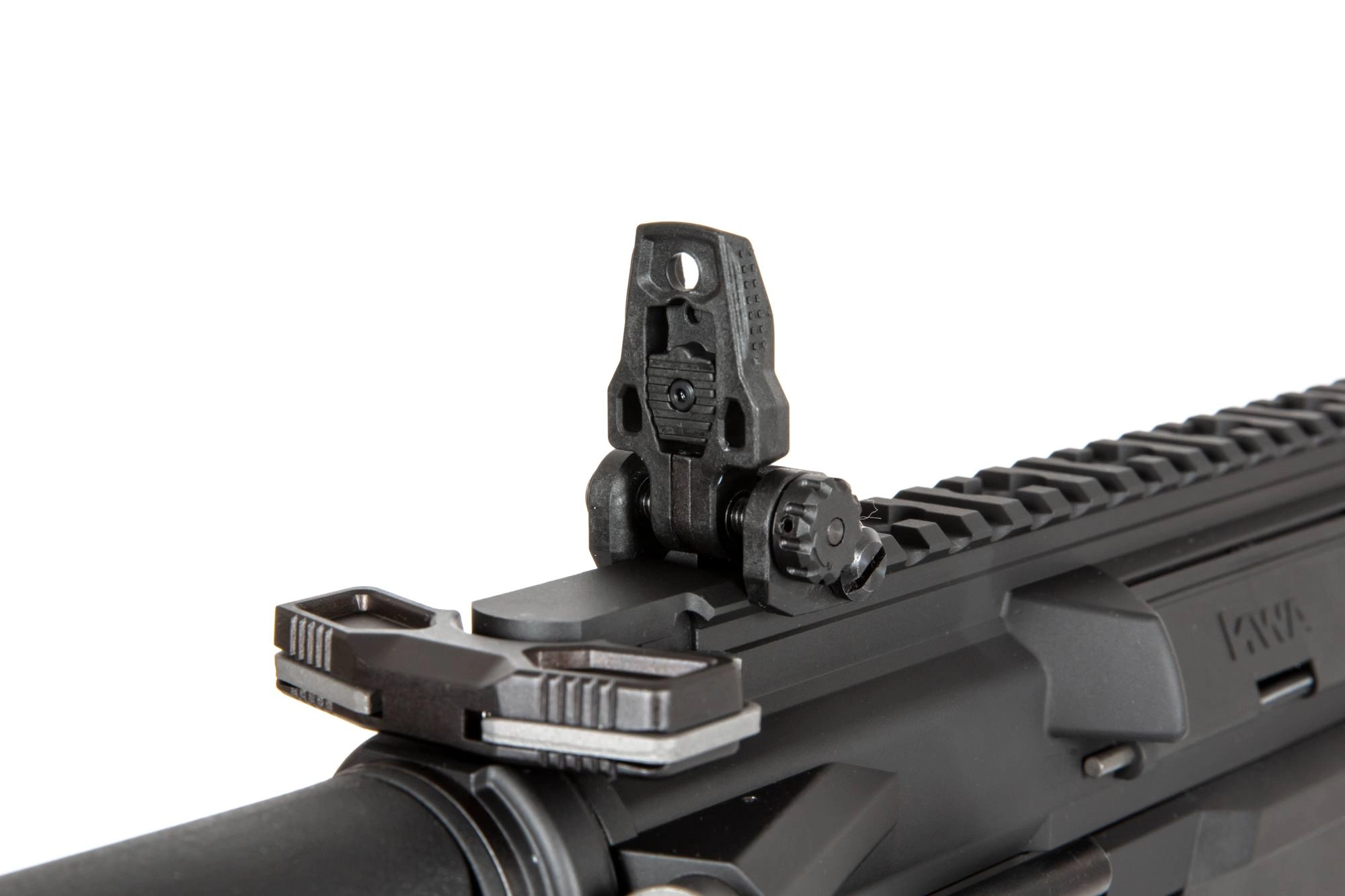 Grzbietowa szyna RIS 22mm, wykonana z aluminium na maszynach CNC pozwala na montaż różnej maści akcesoriów: kolimatorów, lunet, oświetlenia taktycznego, zastosowanie systemu montażowego MLOK w dolnej części oraz po bokach frontu pozwoli na dopasowanie akcesoriów do operatora. W zestawie znajdziemy składane przyrządy celownicze. Repliki serii Ronin charakteryzują się także ciekawymi, customowymi manipulatorami – w tym wypadku zdublowanymi po obu stronach repliki.