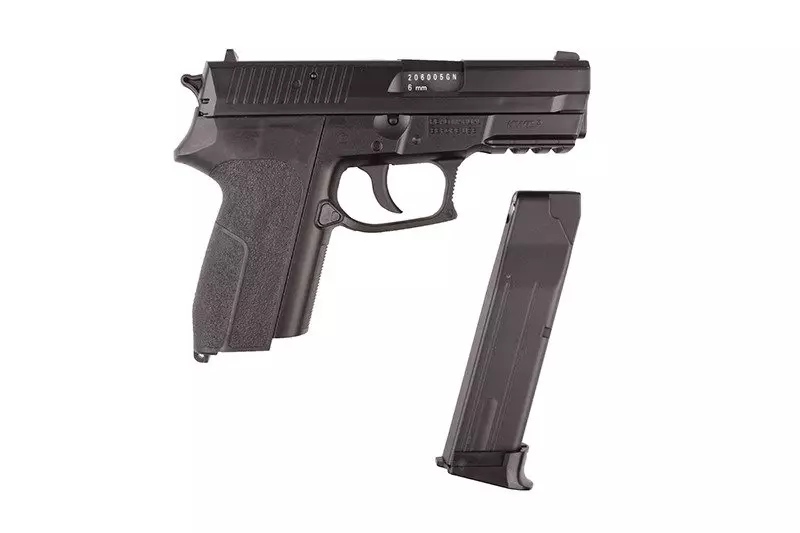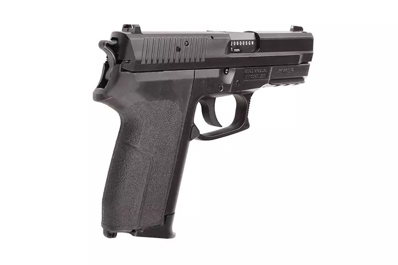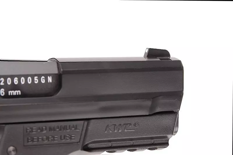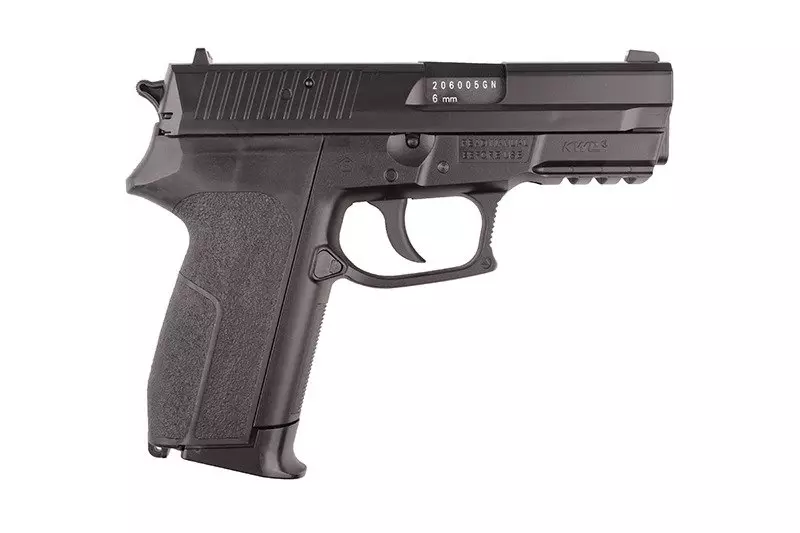 Replika produkcji firmy KWC. Szkielet oraz zamek pistoletu wykonano z wytrzymałego tworzywa sztucznego. Bardzo dobre wykonanie oraz spasowanie części gwarantują bezproblemową i precyzyjną pracę repliki.