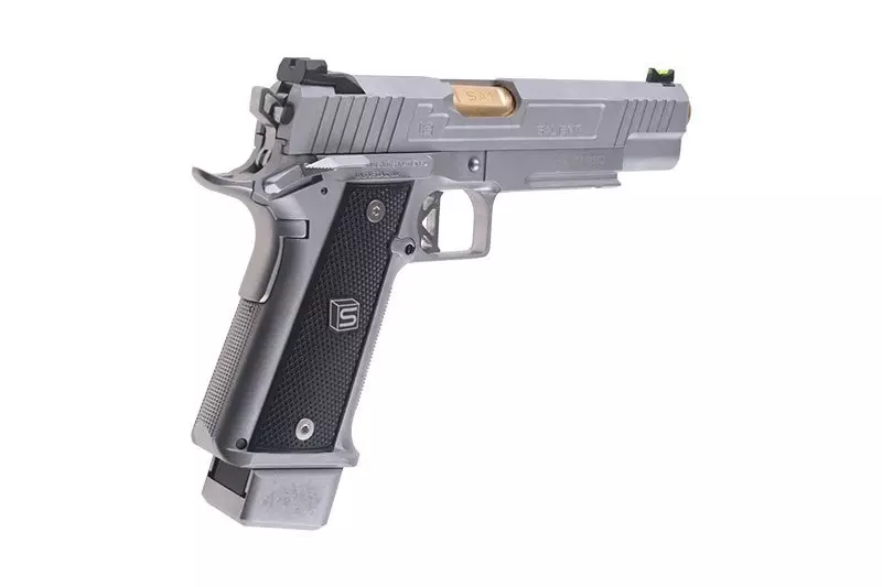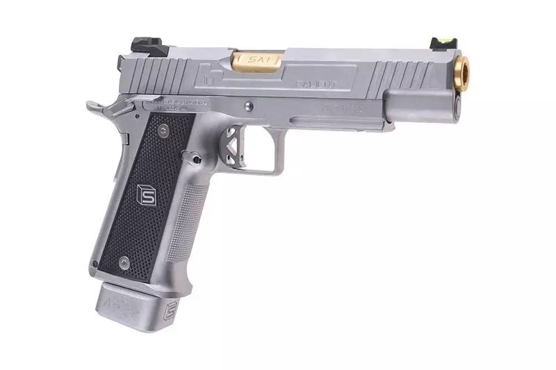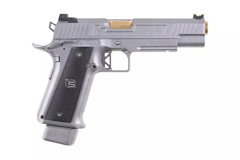 Na metalowy zamek oraz korpus naniesiono oryginalne oznaczenia producenta Salient Arms International™Replika zaopatrzona jest w dwustronny bezpiecznik skrzydełkowy blokujący mechanizm spustu i uniemożliwiający oddanie przypadkowego strzału. Dostęp do bezpiecznika jest bardzo prosty zarówno dla osób lewo- jak i praworęcznych – dźwignia mechanizmu znajduje się w zasięgu kciuka. W modelu tym zastosowano funkcjonalny tylny bezpiecznik dociskowy, który wymusza prawidłowy chwyt w celu oddania strzału. Customowy język spustowy oraz dźwignia kurka nadają replice ciekawy, przyciągający wzrok wygląd. Wzrok przykują także pomalowane na złoty kolor elementy lufy zewnętrznej.