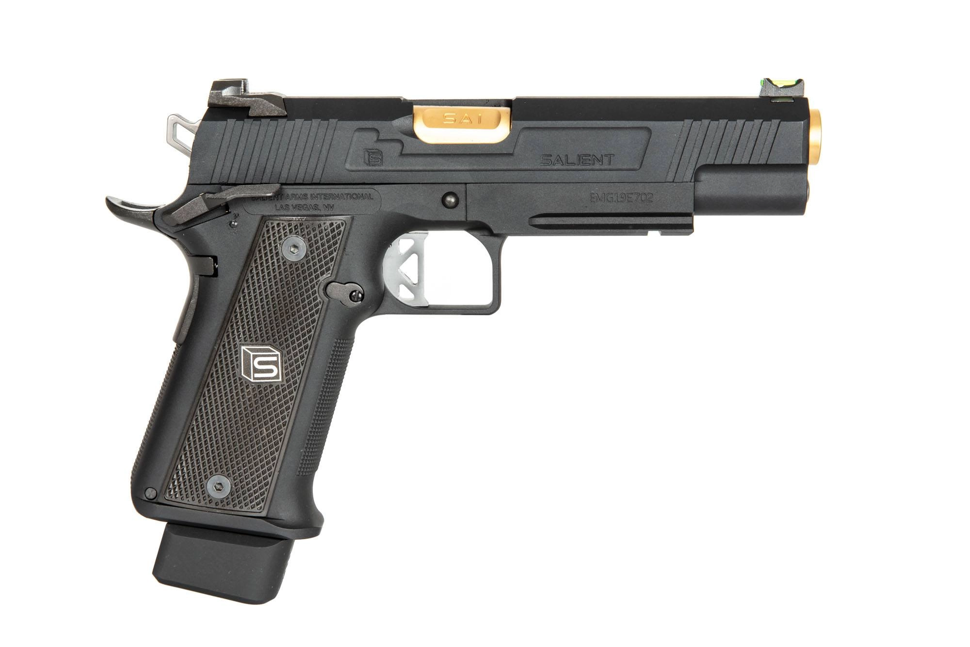 Na metalowy zamek oraz korpus naniesiono oryginalne oznaczenia producenta Salient Arms International™Replika zaopatrzona jest w bezpiecznik skrzydełkowy blokujący mechanizm spustu i uniemożliwiający oddanie przypadkowego strzału.  W modelu tym zastosowano funkcjonalny tylny bezpiecznik dociskowy, który wymusza prawidłowy chwyt w celu oddania strzału. Customowy język spustowy oraz dźwignia kurka nadają replice ciekawy, przyciągający wzrok wygląd. Wzrok przykują także pomalowane na złoty kolor elementy lufy zewnętrznej.