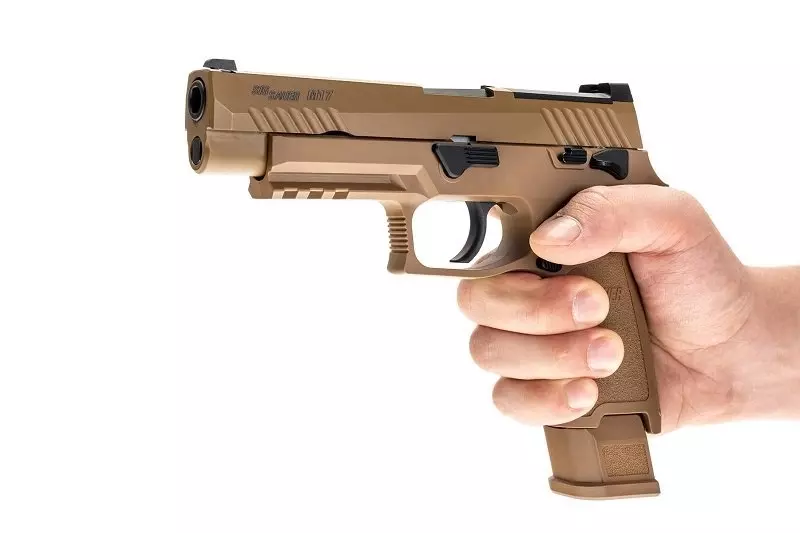 Licencjonowana replika pistoletu służbowego US Army Sig Sauer M17 o napędzie gazowym. Pistolet wykonano z metalu oraz tworzywa sztucznego. Podobnie jak w palnym oryginale szkielet wykonano z tworzywa polimerowego. Zamek został wykonany z metalu. Replika może być zasilana magazynkami zarówno na CO2 jak i magazynkami na green gas.