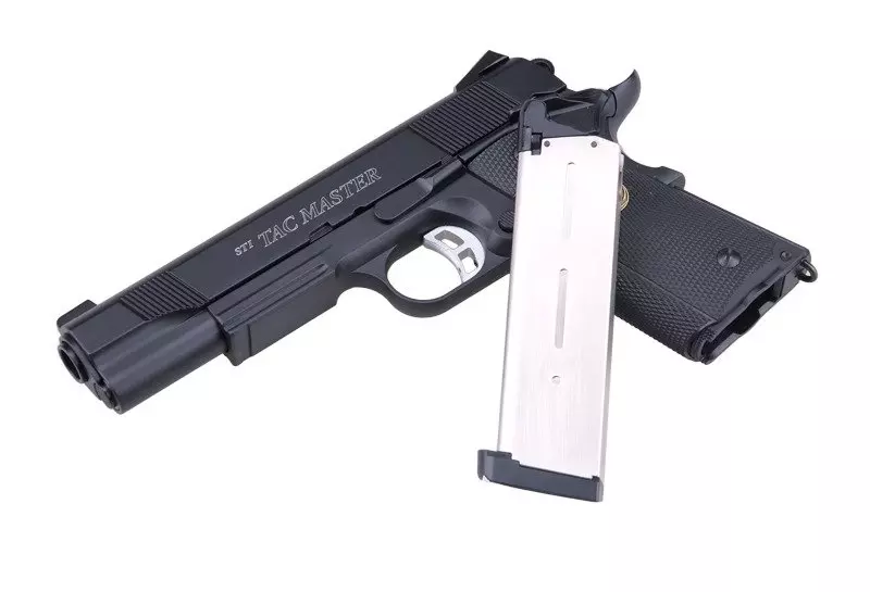 STI Tac Master, wywodzącego się z konstrukcji zaprojektowanej w 1900 roku. Główna konstrukcja pistoletu wykonana została z metalu, zaś okładziny chwytu pistoletowego o profilowanej fakturze – z wytrzymałego tworzywa sztucznego. Bardzo dobre wykonanie oraz spasowanie części gwarantują bezproblemową i precyzyjną pracę repliki.