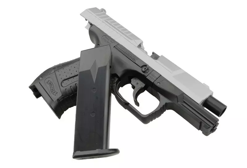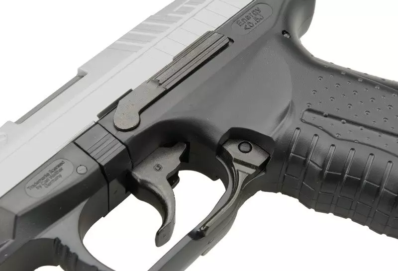 Replika P99 w większości wykonana została z wysokiej jakości tworzywa sztucznego. Wykonany z tworzywa zamek po ostatnim strzale blokuje się w pozycji tylnej, tak jak w wersji palnej. Posiada on żłobienia poprawiające przyczepność dłoni podczas przeładowania. Replika na tylnej ścianie zamka posiada wskaźnik napięcia sprężyny. Podobnie jak w wersji palnej można go wyczuć palcem bez odrywania oczu od celu. Dodatkowy magazynek typu hi-cap mieści 100 kulek.