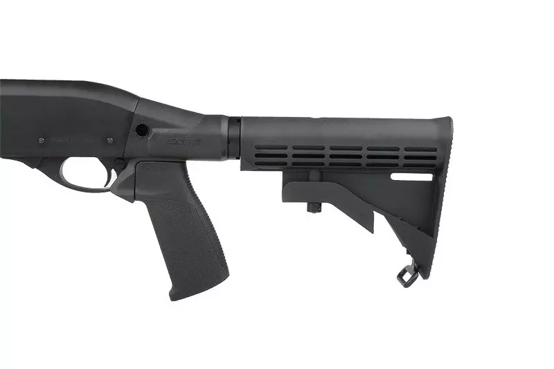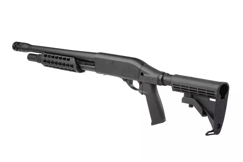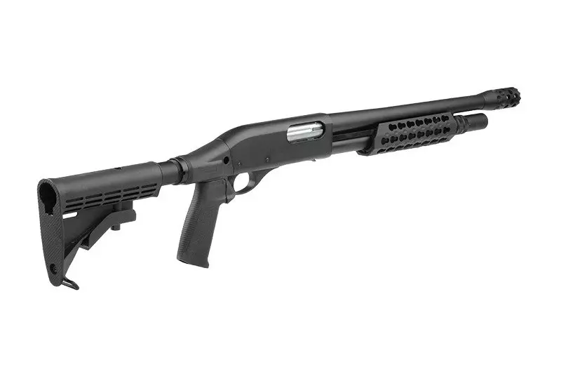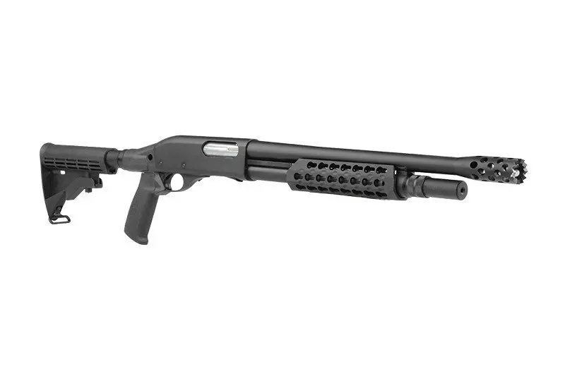 Jest to shotgun o zasilaniu gazowym (CO2), po każdym strzale i przeładowaniu wyrzucający pustą łuskę. Sam proces przeładowania przebiega bardzo sprawnie – łoże wraz z mechanizmem porusza się płynnie, również sam odgłos przeładowania to sama przyjemność dla ucha. Aby zapobiec przypadkowemu zagubieniu wystrzelonych shellsów w polu, do repliki dołączono siatkowy worek zrzutowy mocowany na korpusie.