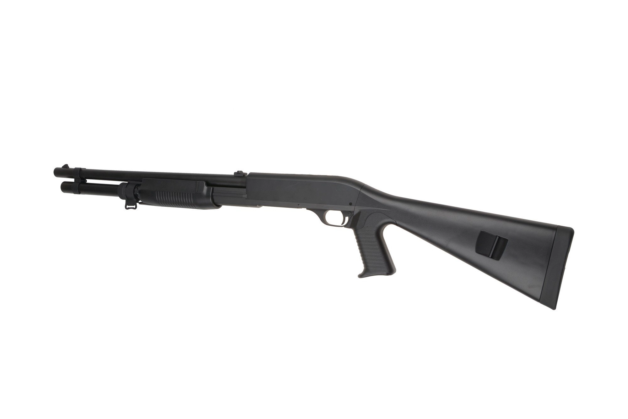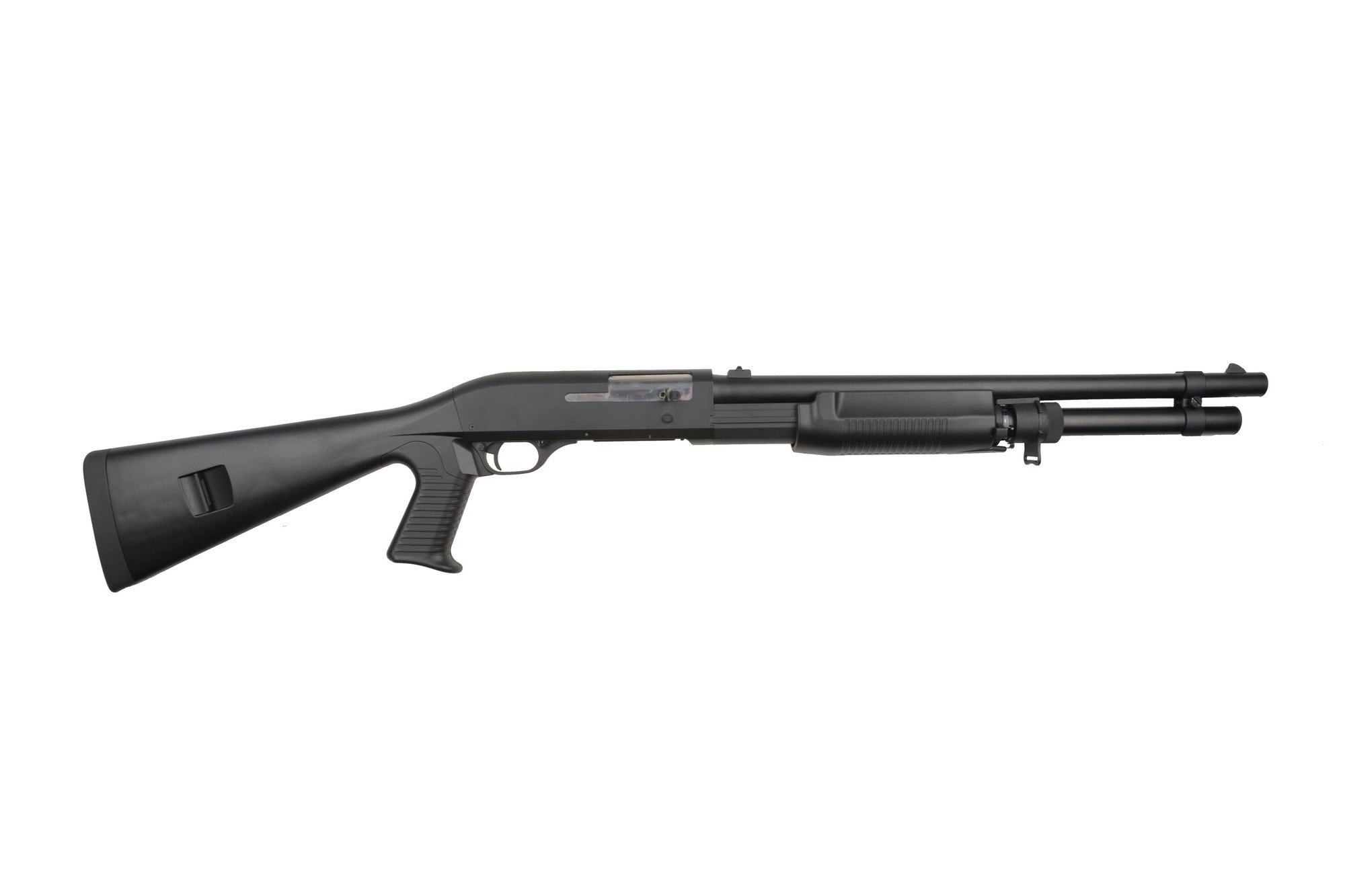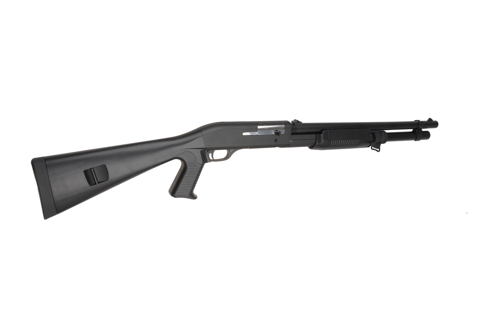 Chwyt przeładowania dzięki antypoślizgowej fakturze obsługuje się wygodnie, a jego praca jest płynna – po chwili treningu można prowadzić ze strzelby szybki i skuteczny ogień.
