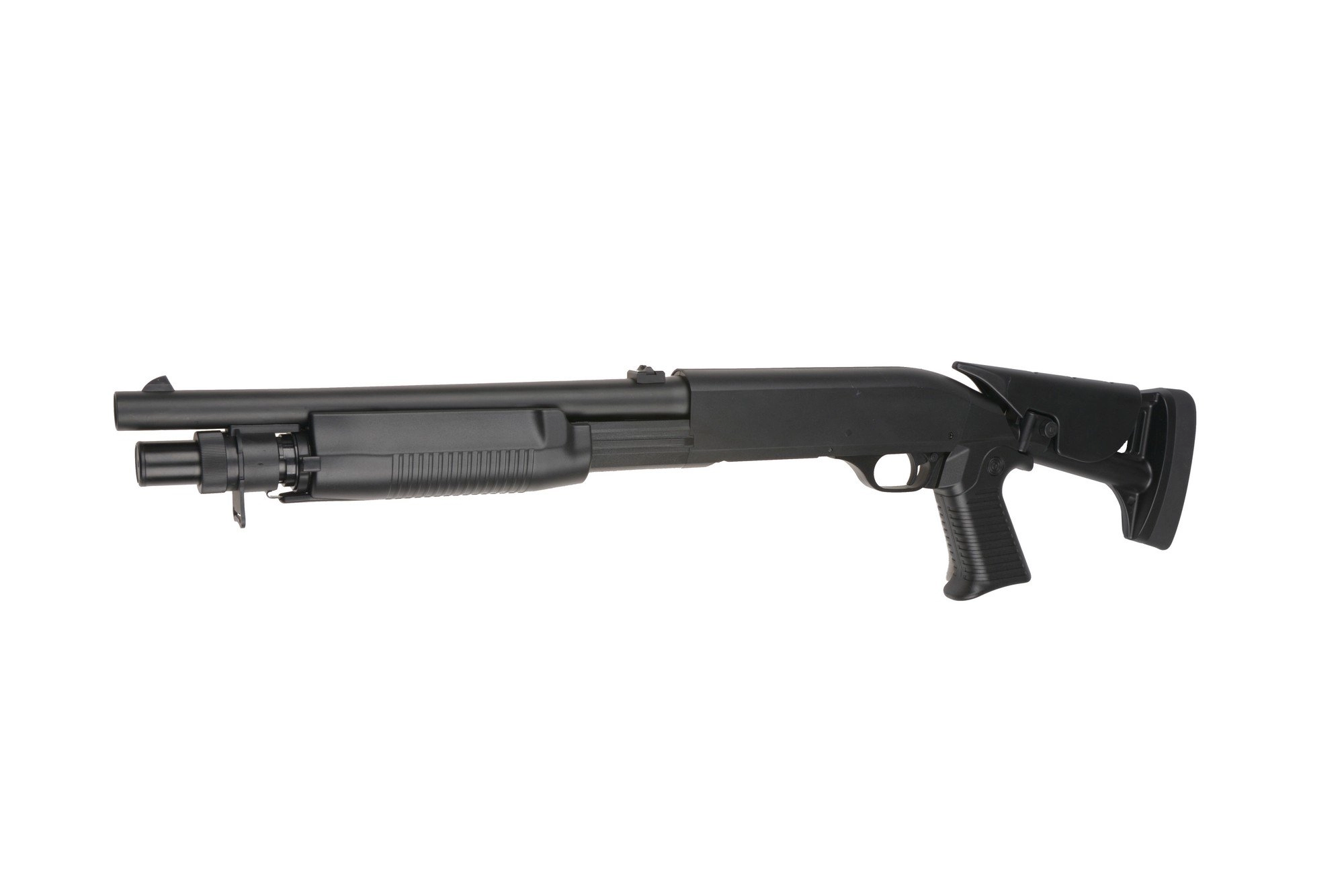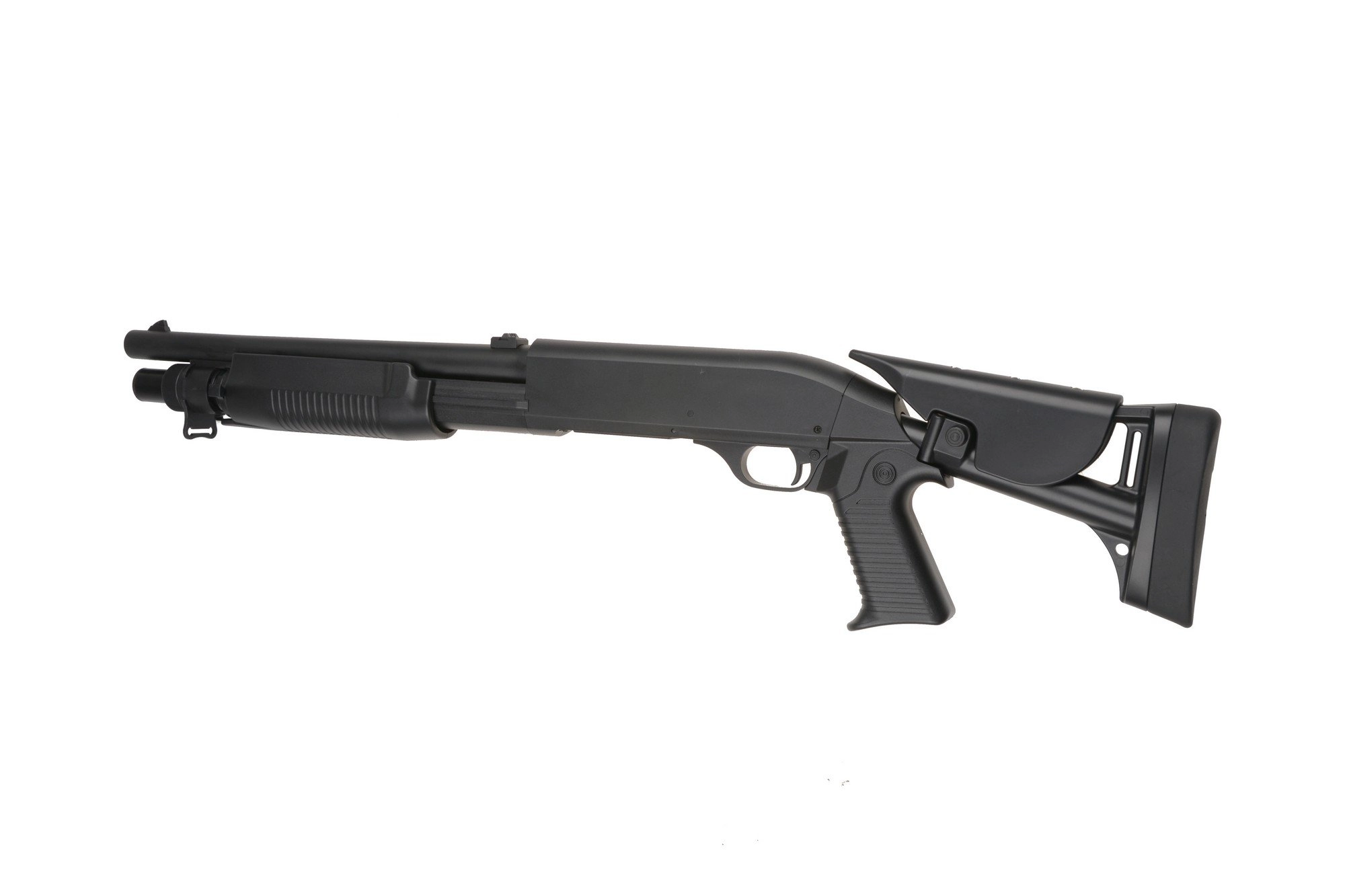 Chwyt przeładowania dzięki antypoślizgowej fakturze obsługuje się wygodnie, a jego praca jest płynna – po chwili treningu można prowadzić ze strzelby szybki i skuteczny ogień.