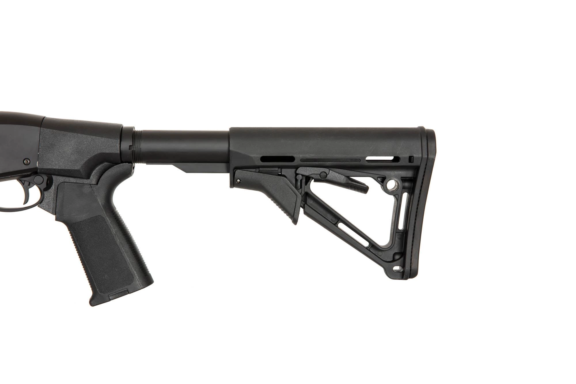 Replika sprężynowa zasilana jest przy pomocy tzw. shellsów mieszczących 24 kulki. Shellsy ładowane są do specjalnej komory znajdującej się w dolnej części repliki, przy osłonie spustu. W replice zastosowano system 3-lufowy, oznacza to, że przy każdym przeładowaniu replika strzela 3 kulkami.