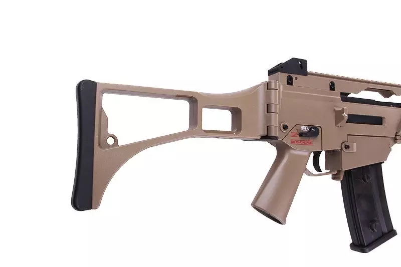 Karabinek został wyposażony w długą szynę montażową RIS 22mm na górnycm chwycie, umożliwiającą instalację różnego typu celowników optycznych. Pod chwytem przednim również znajduje się szyna. Materiał korpusu posiada antypoźlizgową, chropowata fakturę, zastosowano składaną na bok kolbę z wygodną, gumową stopką. Akumulator mieści się wewnątrz chwytu przedniego – można go szybko zdjąć po wyciągnięciu jednego pinu mocującego.