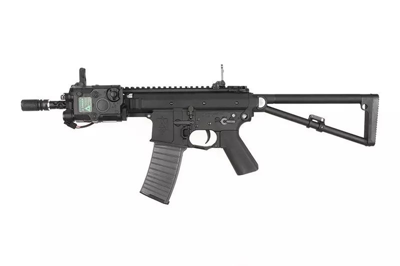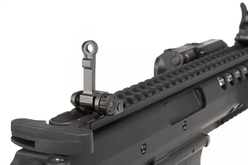 Chwyt przedni zaopatrzony jest w szyny RIS 22 mm, umożliwiające zamontowanie dodatkowych akcesoriów, a grzbietowa szyna Picantinny pozwoli na montaż całej gamy akcesoriów i przyrządów celowniczych. Miejsce na akumulator znajduje się w dołączonej do zestawu atrapie celownika laserowego AN/PEQ-15.