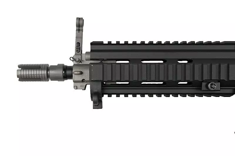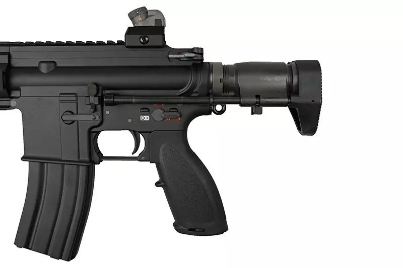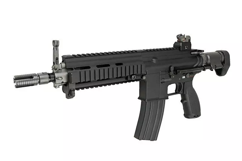 Replika wyposażona została w długą, grzbietową szynę RIS 22mm umożliwiającą mocowanie dowolnych optoelektronicznych urządzeń celowniczych. Dzięki rozsuwanej kolbie zakończonej stopką o antypoślizgowej fakturze, możliwe jest dostosowanie długości repliki do budowy oraz preferencji strzelca. Standardowy tłumik płomienia osadzony został na 14-milimetrowym lewoskrętnym gwincie, co umożliwia montaż w jego miejsce tłumika dźwięku.