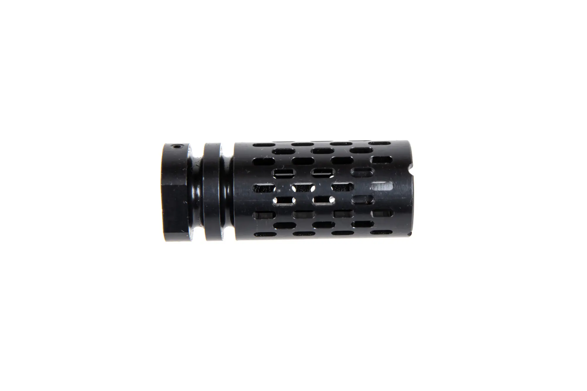 Wysokiej jakości replika urządzenia wylotowego wykonana z oksydowanej stali. W zestawie znajduje się podkładka/ dystanser.