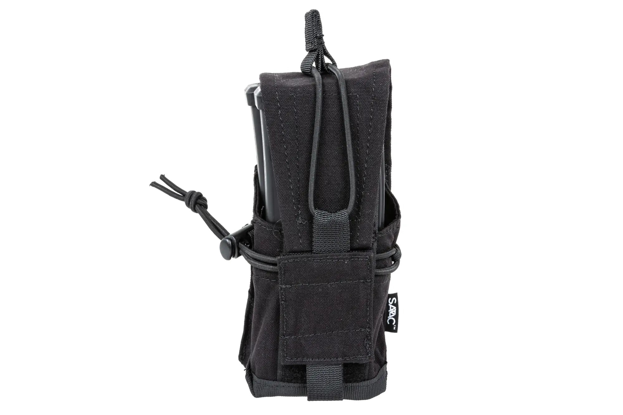 Are you looking for a reliable and universal pouch that can handle intensive field use? Do you want the option to choose between fast open access and a securely closed pouch? Need a solution that fits various rifle magazine types and stays firmly mounted on your gear? Then the SATAC universal MOLLE magazine pouch is the right choice. It is made from durable CORUND(TM) 500D material, offering excellent abrasion resistance and long service life. Thanks to its smart design, it provides 2 magazine retention methods: either a hook-and-loop flap (closed configuration) or an elastic cord for quick draw (open configuration), ideal for dynamic situations. A side elastic bungee with a pull tab allows volume adjustment, keeping magazines and other gear firmly secured whether you carry 1 or 2 magazines. With the MOLLE system, the pouch is compatible with most modern tactical equipment.