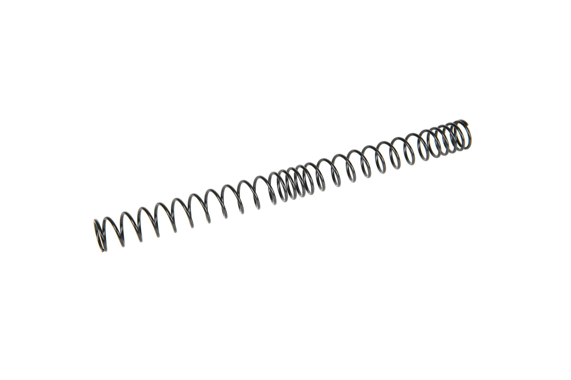Wykonana ze stali sprężyna główna przeznaczona do replik AEG. Nieregularne uzwojenie zapobiega zbijaniu się a co za tym idzie przedłuża żywotność sprężyny.