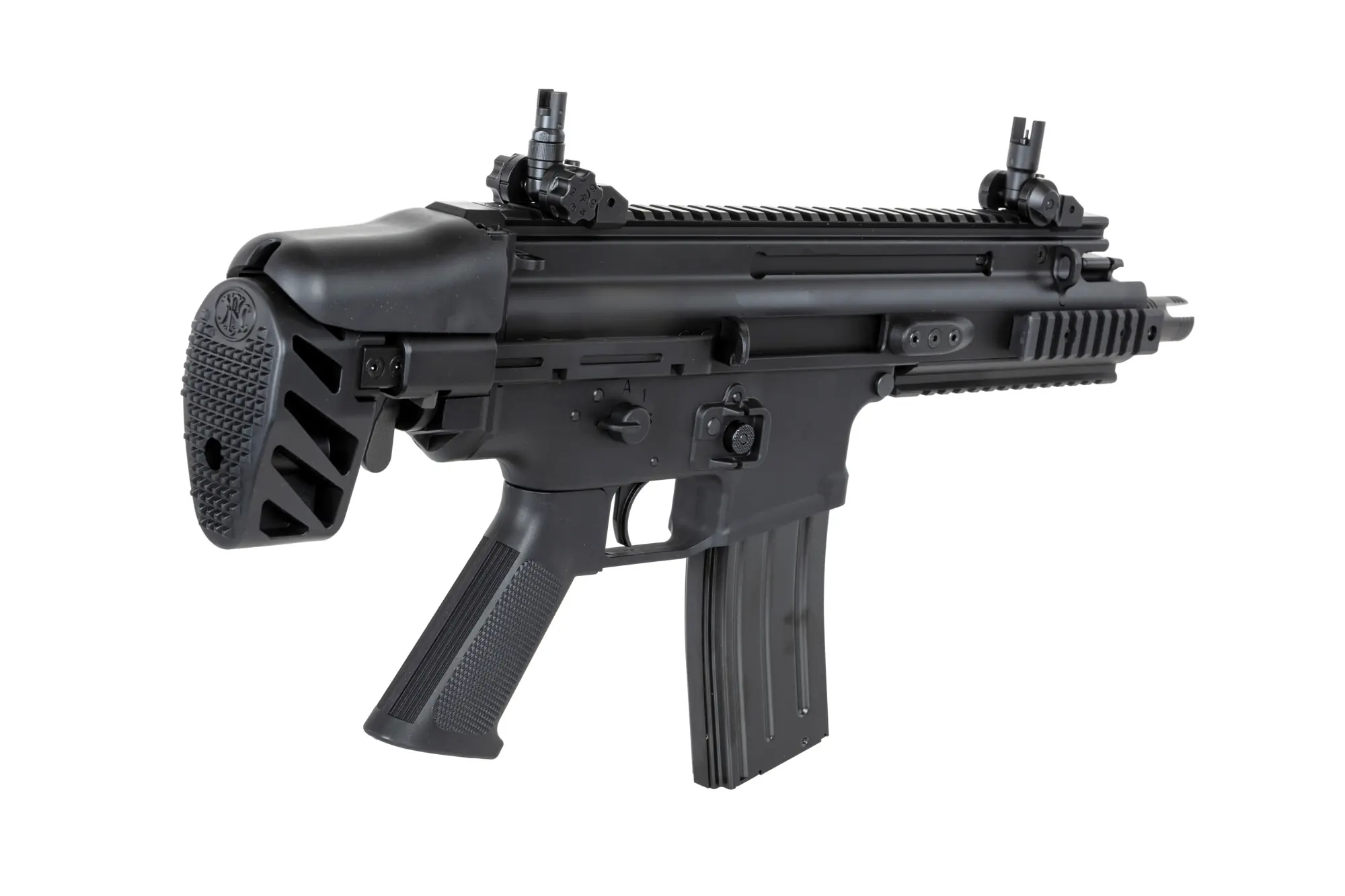Subkarabinek ASG od firmy Cybergun na licencji udzielonej przez FN HERSTAL – belgijskiego producenta broni palnej – co przełoży się na odpowiednie oznaczenia na korpusie karabinka – tj. logo belgijskiego producenta FN HERSTAL oraz nazwę FN HERSTAL BELGIUM.