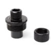Suppressor adapter for airsoft rifles. It can be simply screwed at the end of the gun barrel, instead of the cap. On the smaller thread, you can screw any suppressors or flash hiders with a standard 14mm left-hand (CCW) thread. A rubber ring is inserted inside the adapter. It improves the barrel axis lead. It fix inner barrel exactly in the center of the adapter and reduce the vibrations. The adapter is also equipped with a thread cover that prevents damage or thread dirt.