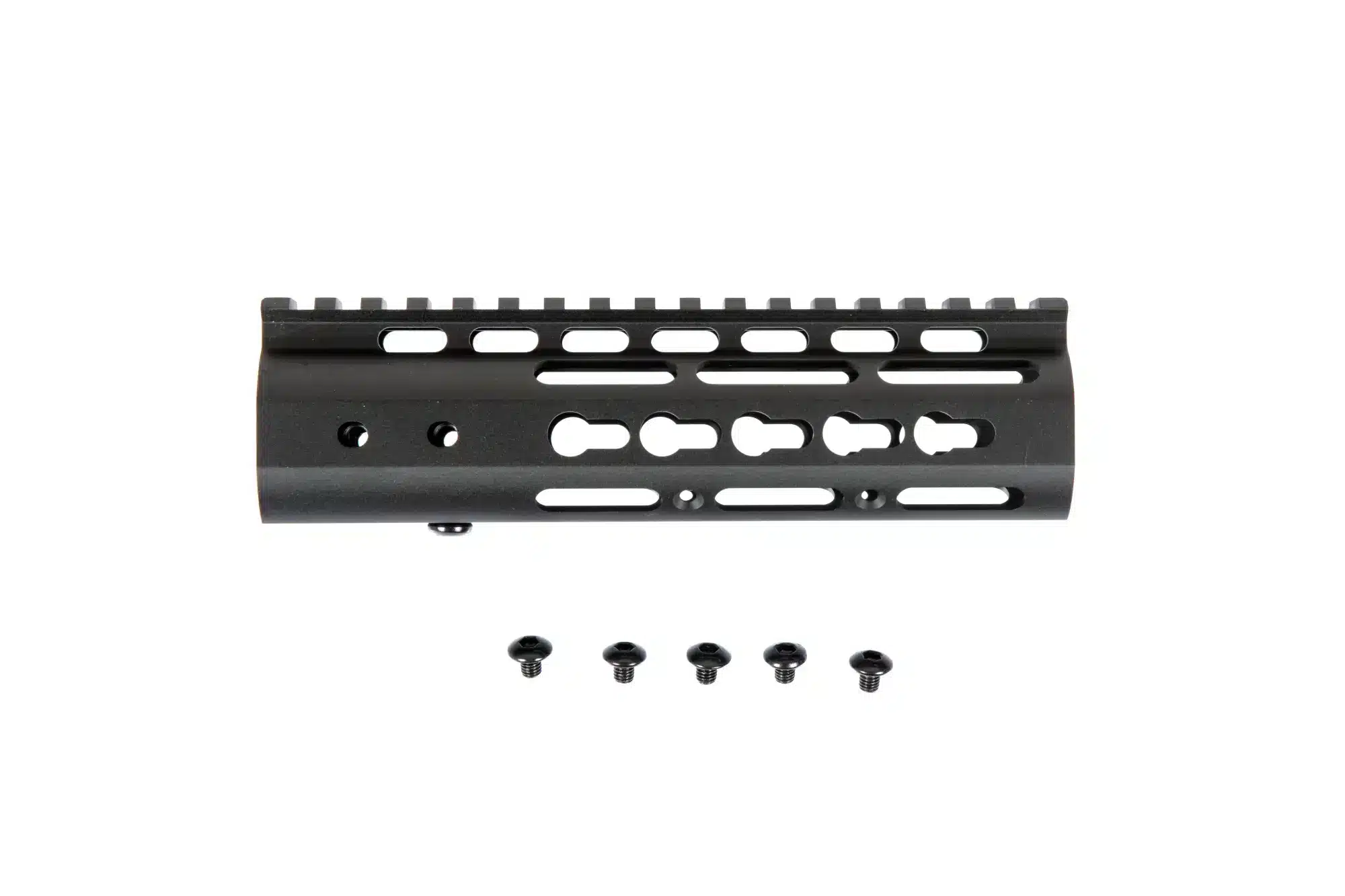 Wyposażona w system montażowy KeyMod 7″, frontowa szyna RIS od marki Specna Arms. Szyna ma długość 177mm i została wykonana z wysokiej jakości aluminium obrabianego na precyzyjnych maszynach CNC. Produkt dedykowany jest do mocowania w replikach typu M4/M16.
