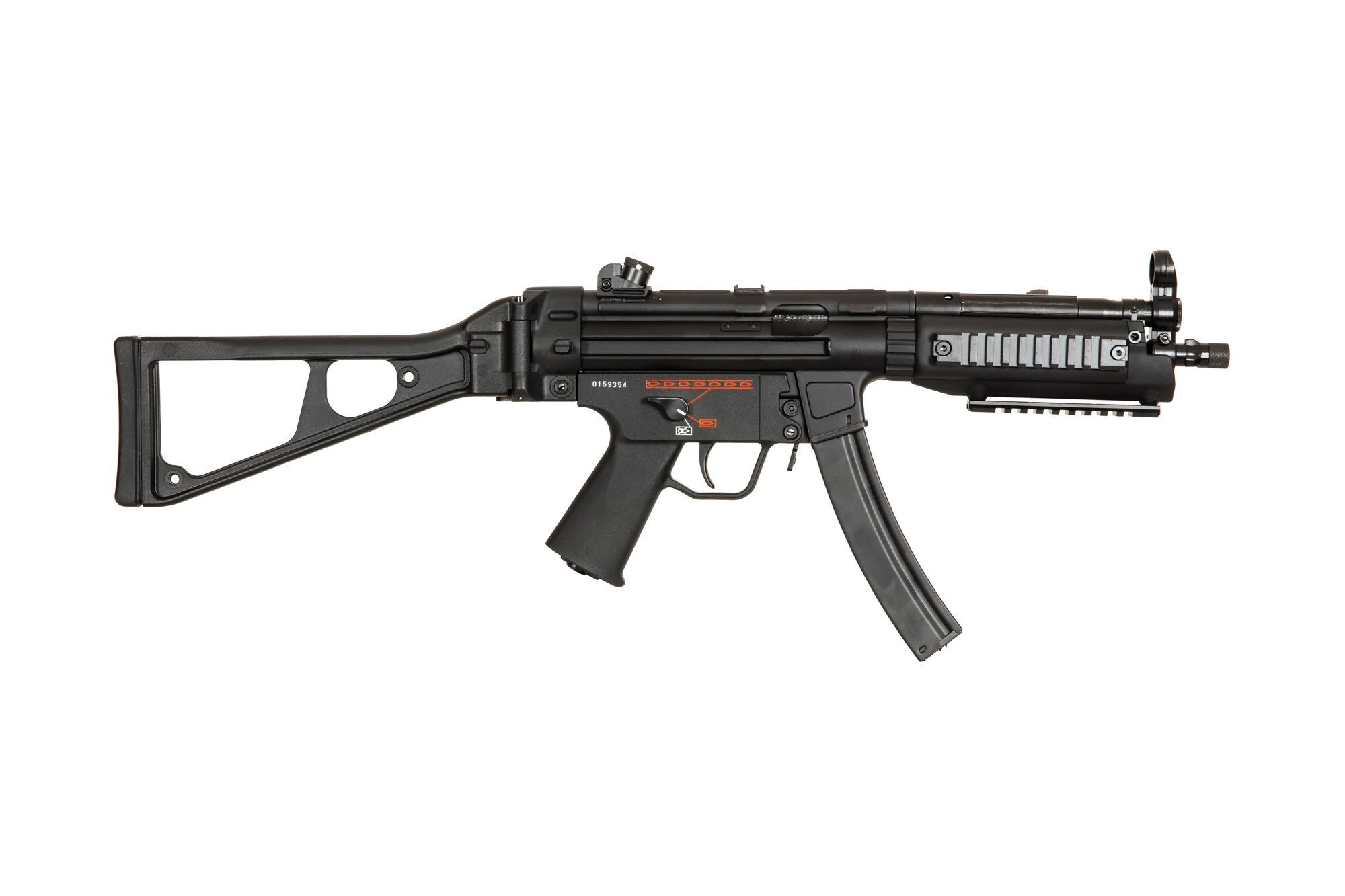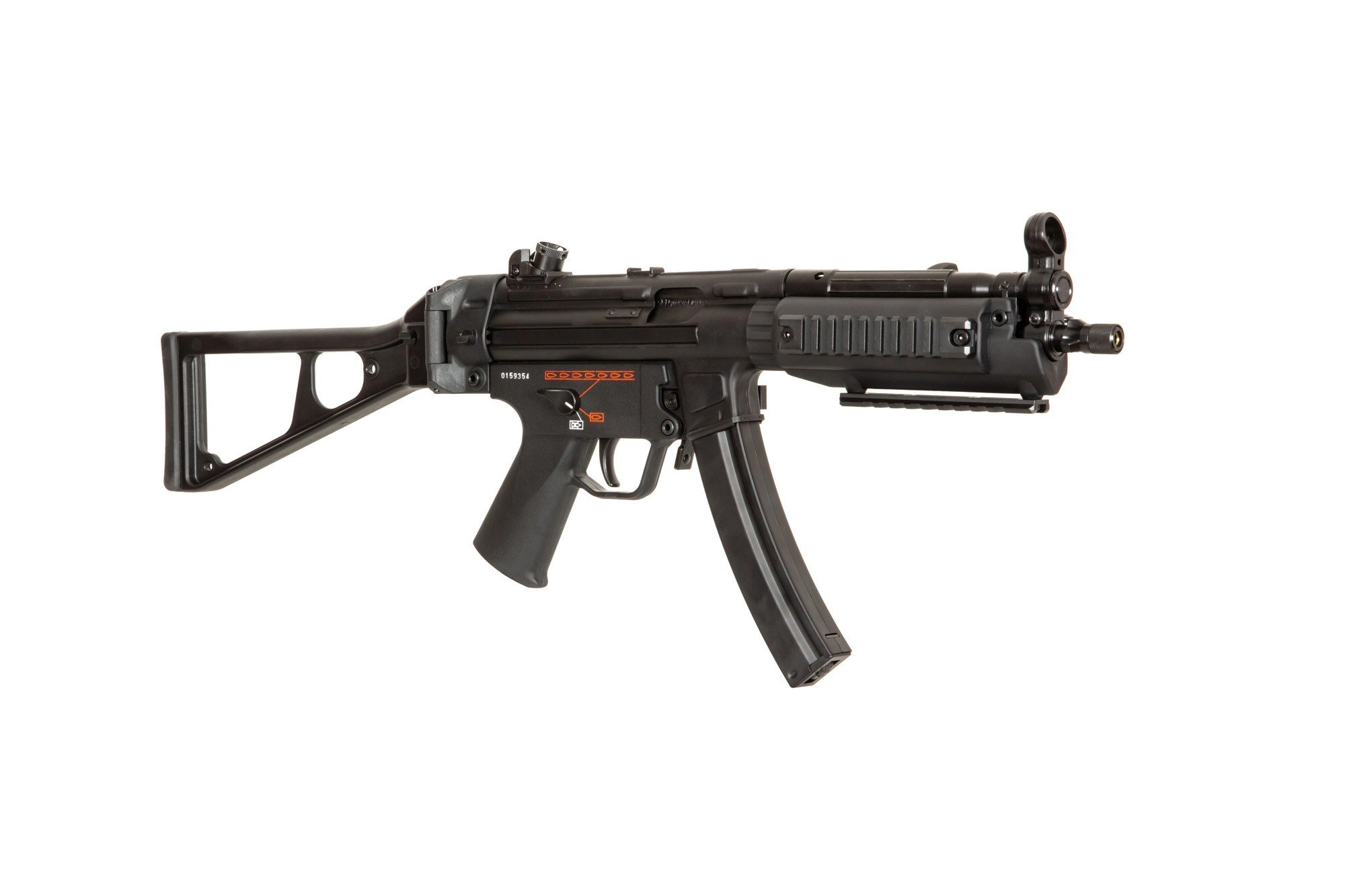 Na chwycie przednim zamontowane są trzy szyny montażowe RIS 22mm, każda o długości 120mm. Do zestawu dołączono również górną szynę RIS, mocowaną na korpusie. Akumulator mieści się w chwycie przednim. Aby podłączyć akumulator należy wypiąć PIN znajdujący się w przedniej części chwytu.