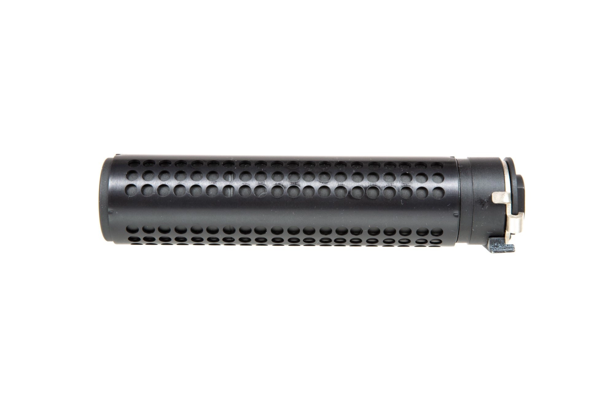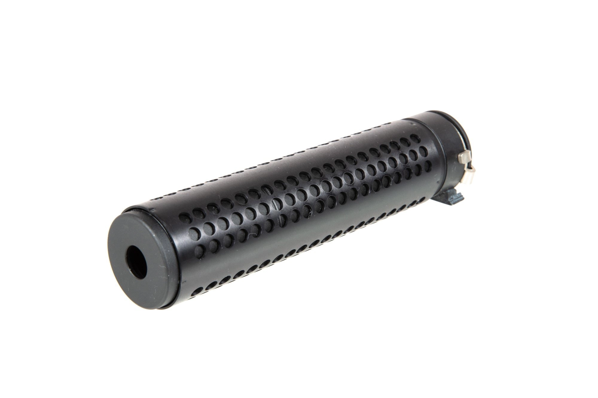 Wykonany z metalu tłumik dźwięku o długości 170mm wyposażony jest w gwint 14mm CCW oraz system QD co pozwala na jego szybki montaż lub demontaż na replice.