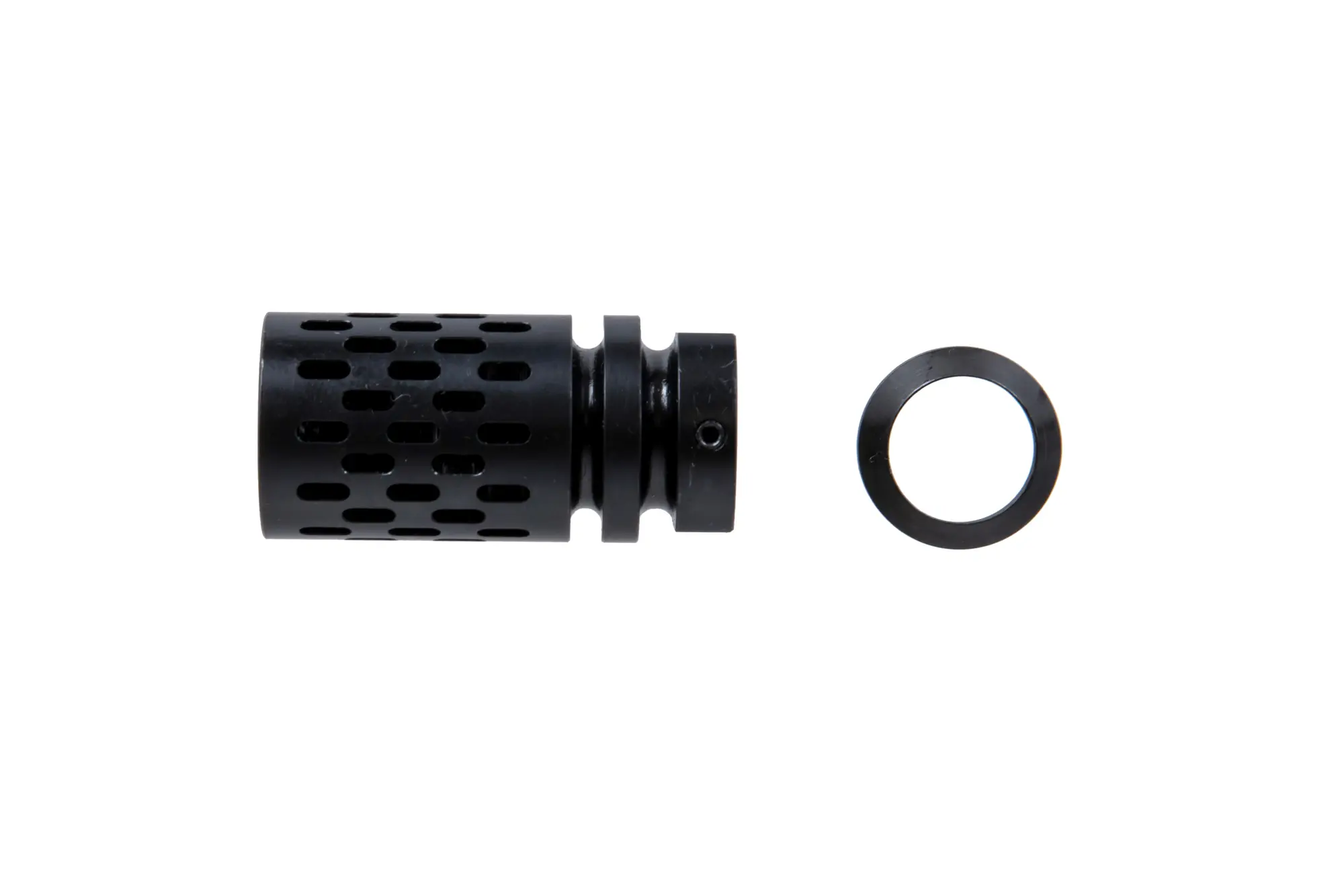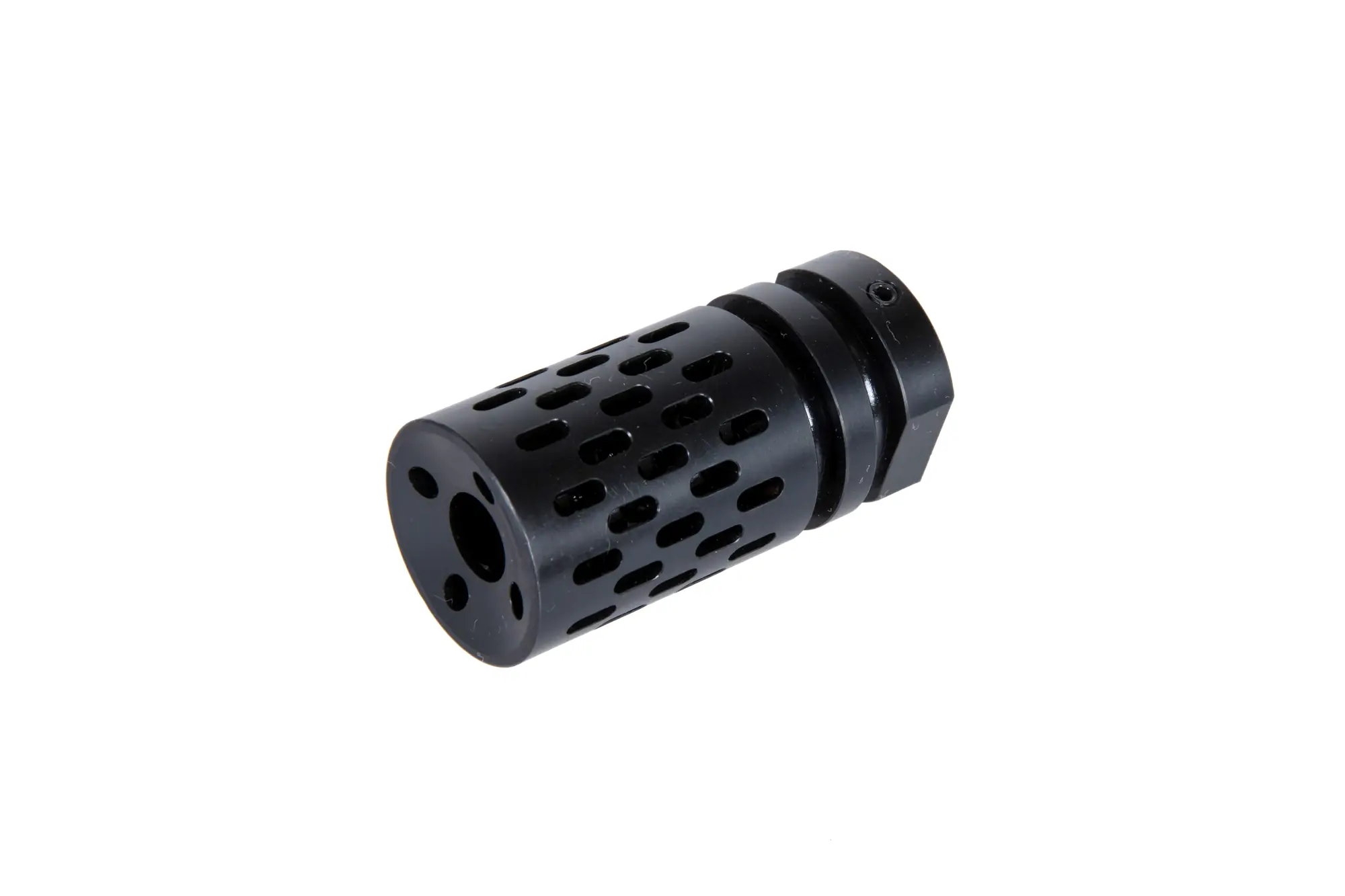 Stalowe urządzenie wylotowe dedykowane do replik M4/M16, będzie jednak pasować do każdego karabinka z lufą zakończoną standardowym lewoskrętnym gwintem 14mm CCW.