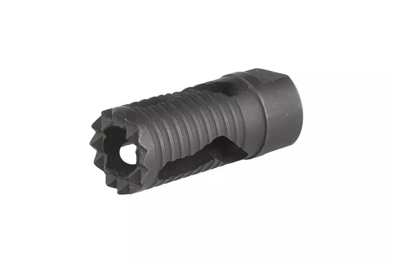 Tłumik wykonany w całości z metalu. Posiada gwint lewoskrętny 14mm, dzięki czemu pasuje do większości replik asg.