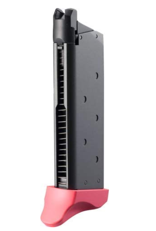 Quality Magazine: Die-cast build with 18-round capacity and ergonomic pink baseplate.