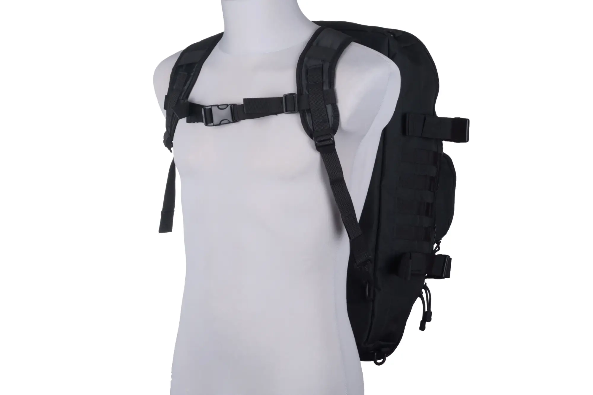 System nośny stanowi klasyczna taśma nośna oraz plecakowe szelki, oba te elementy można całkowicie odczepić od torby.