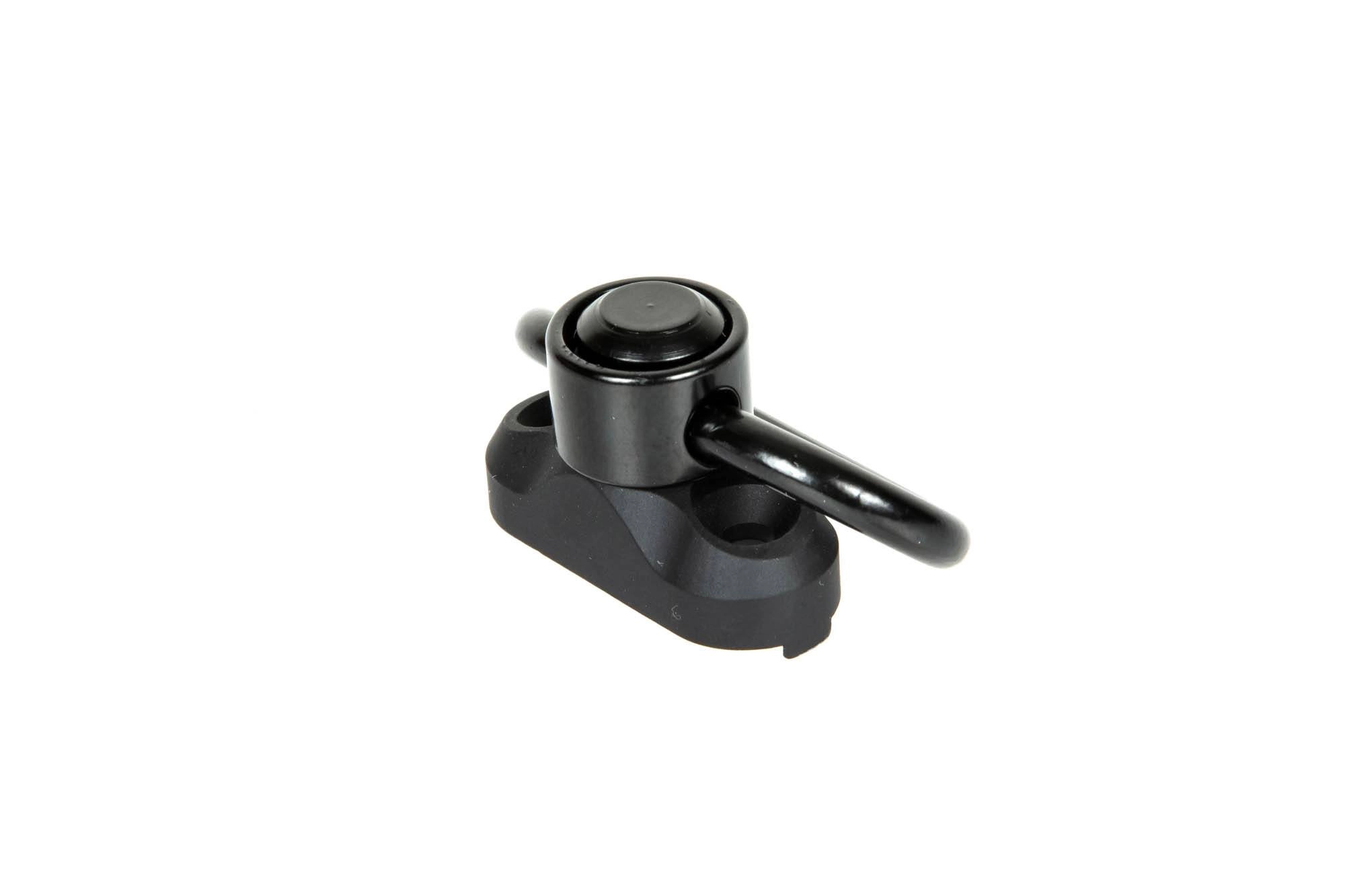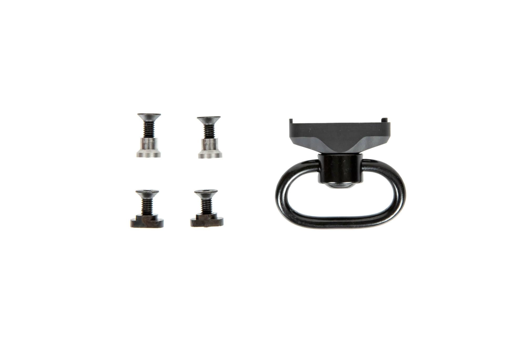 Zestaw składa się z montażu na szynę KeyMod / M-LOK oraz wykonanego ze stali zaczepu pasa nośnego typu QD.