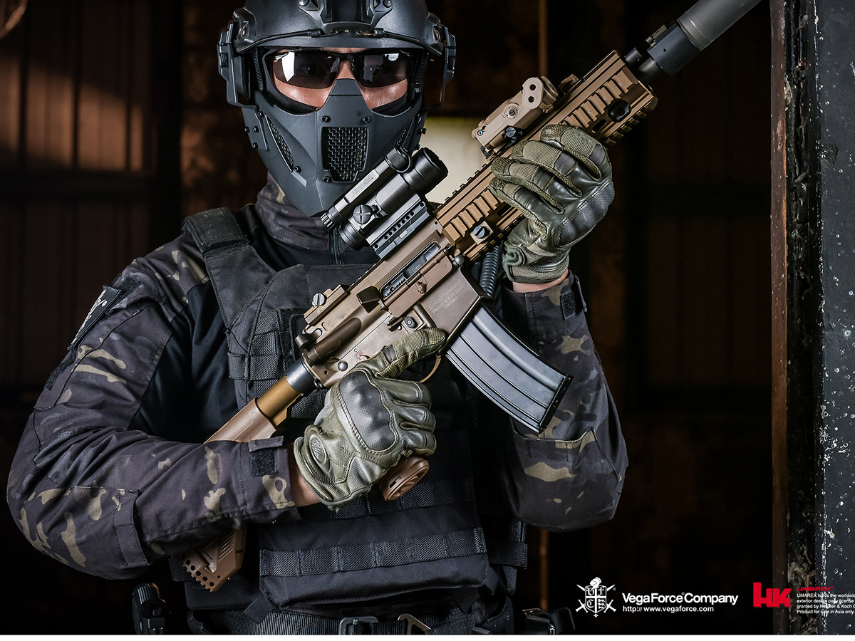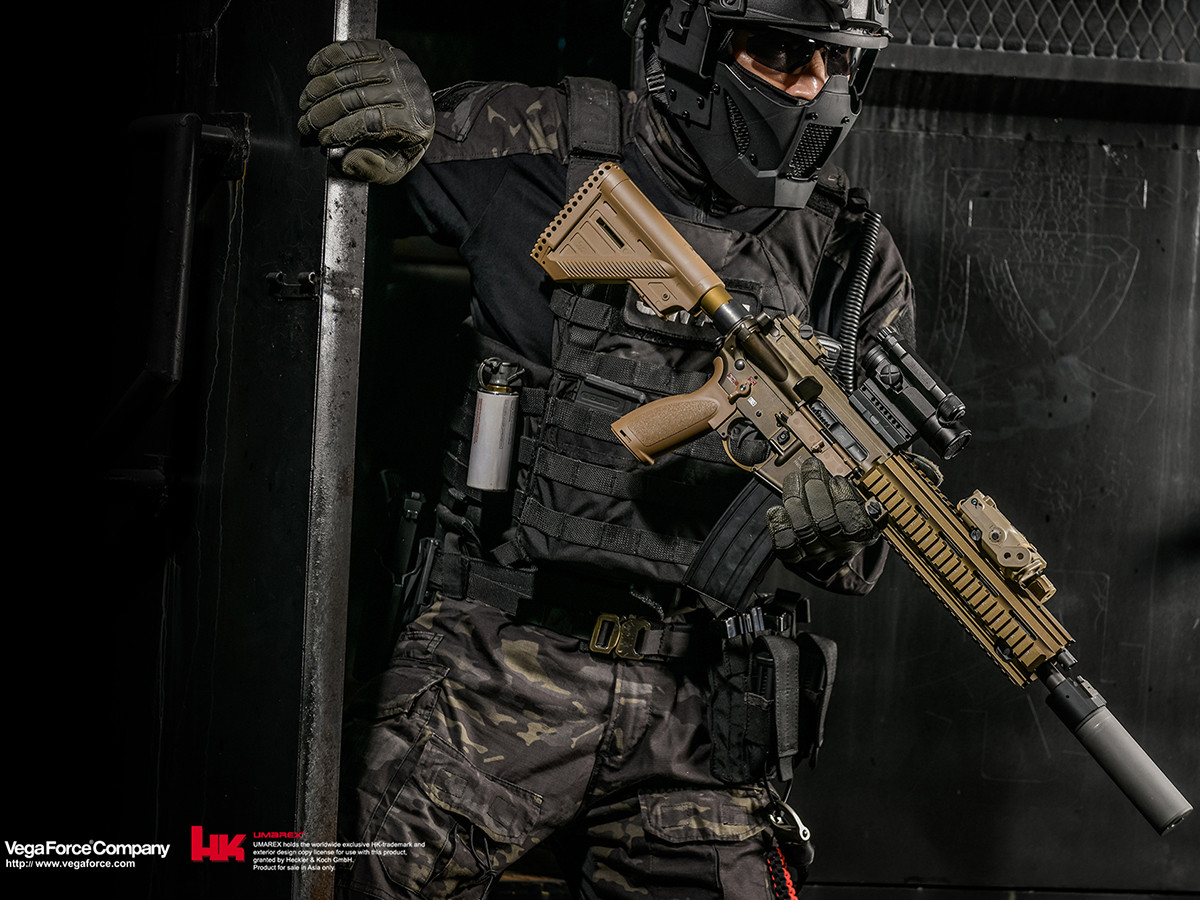 The AEG version offers top-of-the-line technology and craftsmanship. The assault rifle features ambidextrous controls, perfect alignment of the weapon’s body, massive handguard, and Heckler a Koch markings, including detail..