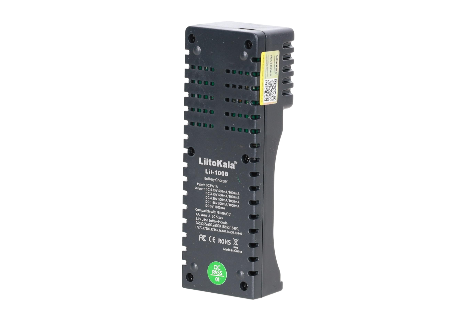 Kompatybilne ogniwa: Li-Ion 3.7V / 3.8V, LiFePO4 3.2V, Ni-MH 1.2V, rozmiary 26650 / 22650 / 18650 / 18490 / 18350 / 17670 / 17500 / 17355 / 16340 / 14500 / 10440 / AAA / AA / SC / S