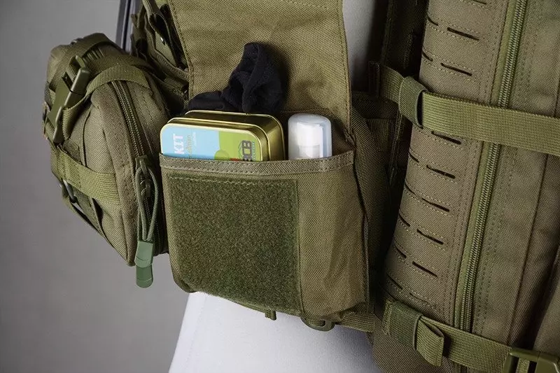Wykonana z mocnego i wytrzymałego prosta ładownica uniwersalna typu cargo. Ładownicę umieścić możemy na oporządzeniu przy pomocy palsów MOLLE. NA przodzie ładownicy umieszczono panel rzepowy.