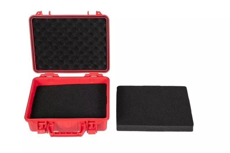 Wykonana z tworzywa sztucznego uniwersalna skrzynka na akcesoria o wymiarach wewnętrznych 255x195x90mm. Posiada 4 warstwy amortyzujących gąbek. 2 posiadają nacięcia pozwalające na idealne dopasowanie gąbki do przenoszonej zawartości.