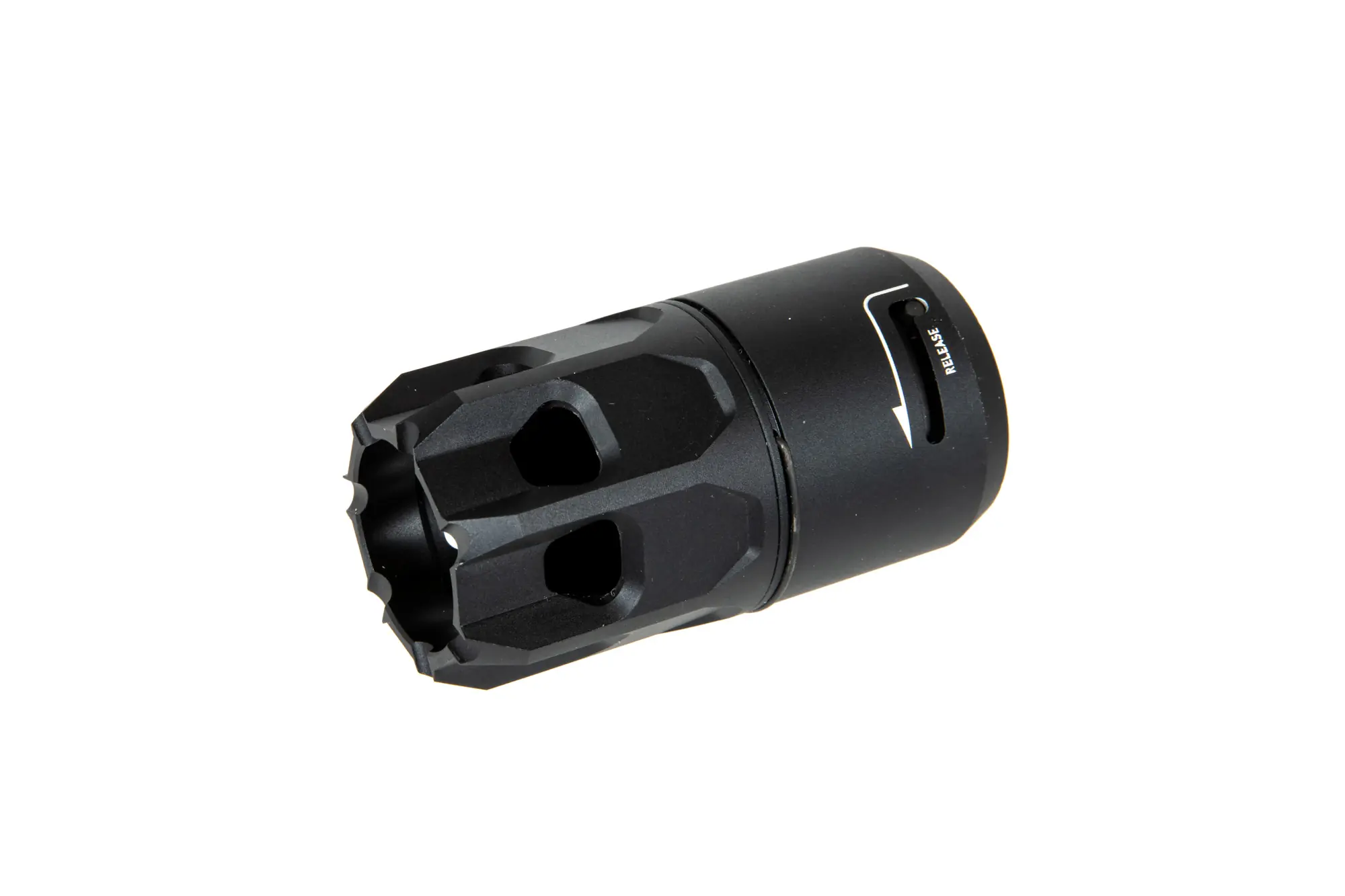 Wykonane z aluminium oraz stali urządzenie wylotowe na licencji Strike Industries otrzymanej od firmy EMG. Przeznaczone do montażu na tłumikach płomienia typu King Comp.