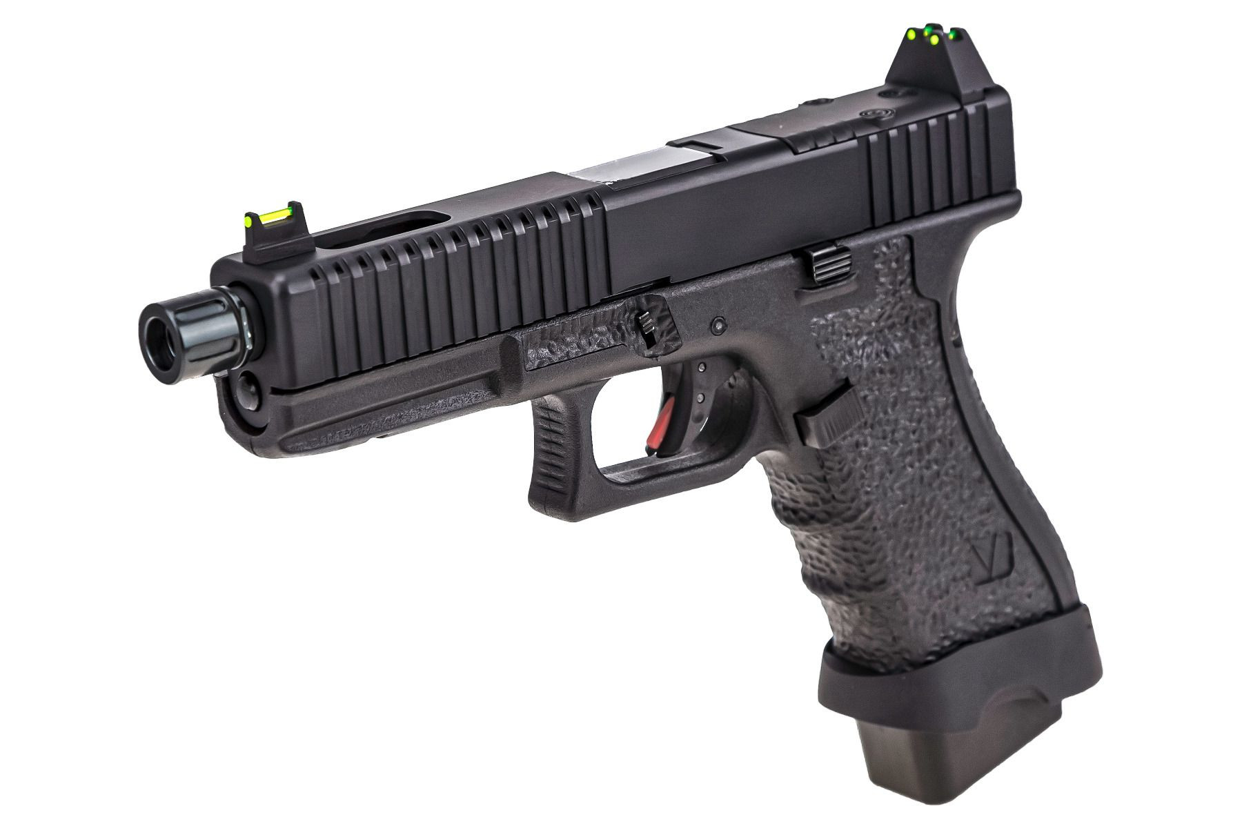 These are exceptional gas blowback pistols (GBB) that have gained popularity among many players for their reliability, durability, and their design inspired by the famous Glock pistol. For enthusiasts, VORSK has prepared EU models that allow for single-shot firing (model EU17) or full-auto burst (EU18).The full-slide model is complemented by the Vented version with lightening cuts on the pistol slide. All EU models are available in various color combinations, including versions with a BSD micro red dot sight for both sport shooters and military enthusiasts looking for a compact and reliable sidearm for eliminating adversaries. The slightly higher price is easily surpassed by its unique design, rich features, and top-notch, reliable performance.This gas airsoft pistol offers an exceptionally realistic experience with a strong blowback system, where each shot is accompanied by the characteristic slide racking sound, and after the last BB is fired, the slide remains in the rear position. The disassembly of the weapon is easy, and for the maintenance of moving parts, it is recommended to use silicone grease or oil.Inside the gun, you’ll find upgraded nozzle, a precise inner barrel with a diameter of 6.03 mm.