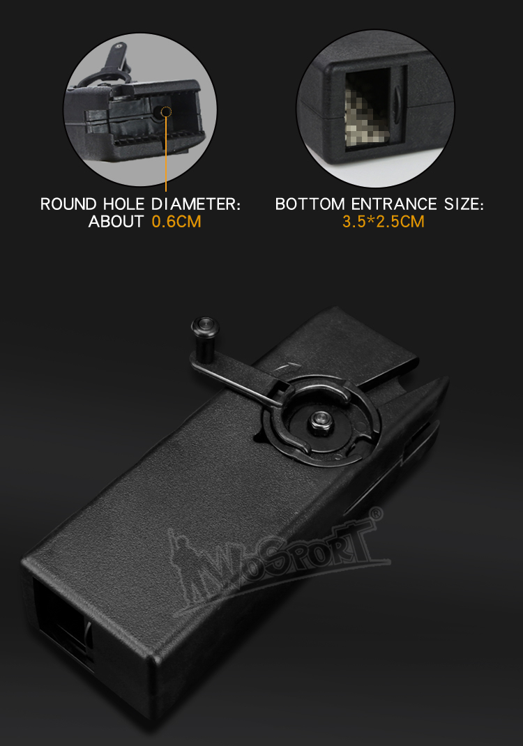 The Lever Speed Loader by WoSporT is an essential piece of gear for every airsoft player. Quickly turning the crank allows you to rapidly load almost any mid-cap M4/16 magazine.The compact size of this speed loader ensures it fits perfectly in any double M4 magazine pouch, so you can always have it with you.