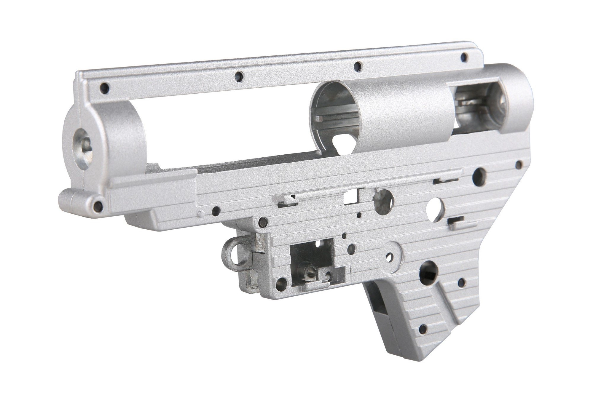 Wykonany z dużą dokładnością szkielet posiada gniazda na łożyska o średnicy 8 mm, które zwiększają kulturę pracy gearboxa w replice. Szkielet zalecany do sprężyn max M150.