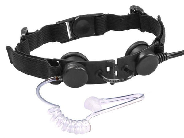 Military standard plug ( TP-120 )version, radio communication requires PTT ( Push-To-Talk ) unit ( sold separately ). – Throat Mic with adjustable harness and neck strap – Flexible acoustic tube with rubber ear piece – Extra harness joint piece and adjustable neck band for better fitting