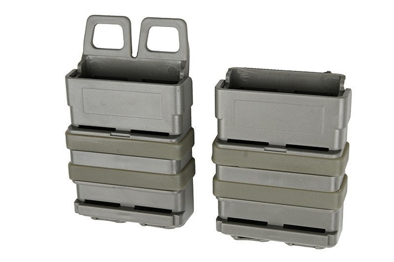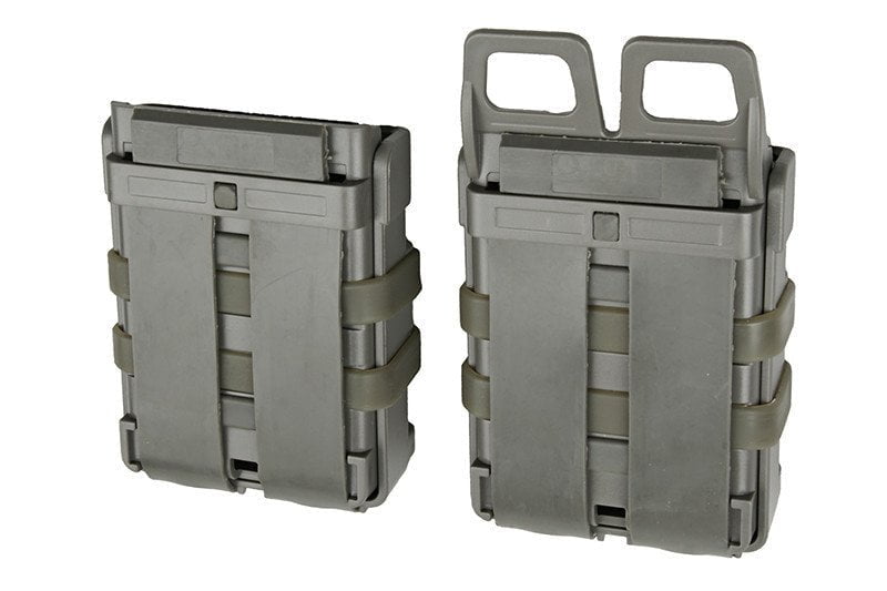 Zestaw 2 ładownic typu FAST, wykonane z mocnego tworzywa polimerowego. Przeznaczone dla magazynków typu 5,56, np. M4/M16 i pochodnych (STANAG). Nie posiadają klap, co umożliwia błyskawiczne dobycie magazynka, a jednocześnie trzymają go pewnie i nie pozwalają na przypadkowe wypadnięcie, nawet po montażu “do góry nogami”. Zapewnia to konstrukcja ładownicy – składa się ona z dwóch połówek, mocno ściśniętych silikonowymi gumami.